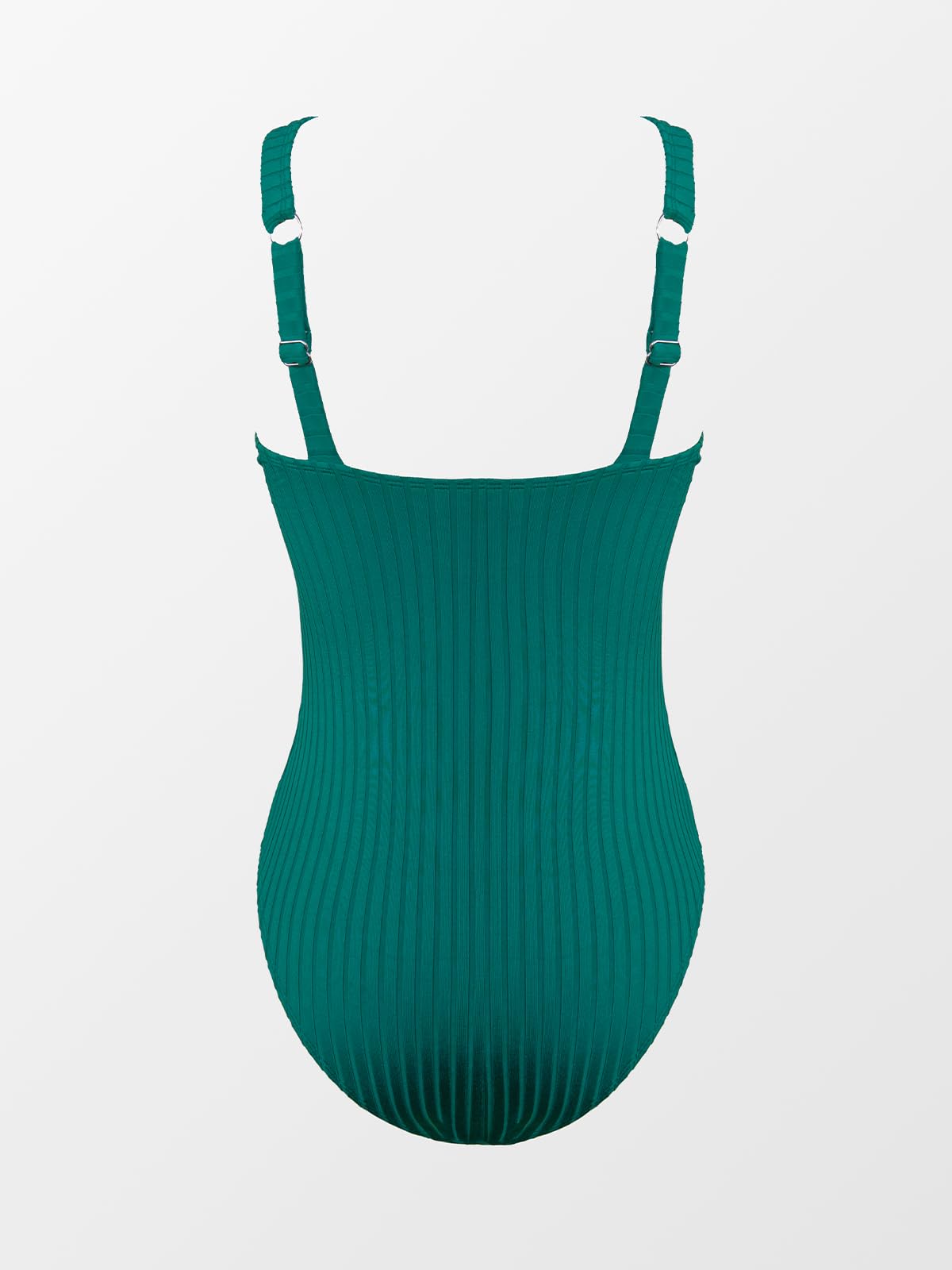 CUPSHE Women's One Piece Swimsuits Bathing Suit Ribbed Cutout Crisscross Front Swimwear M, Green