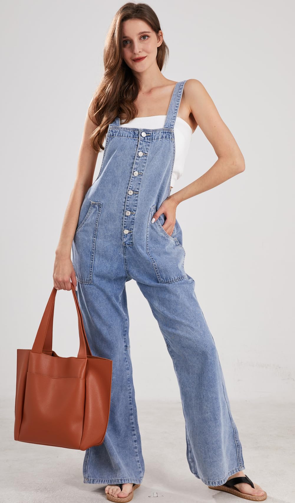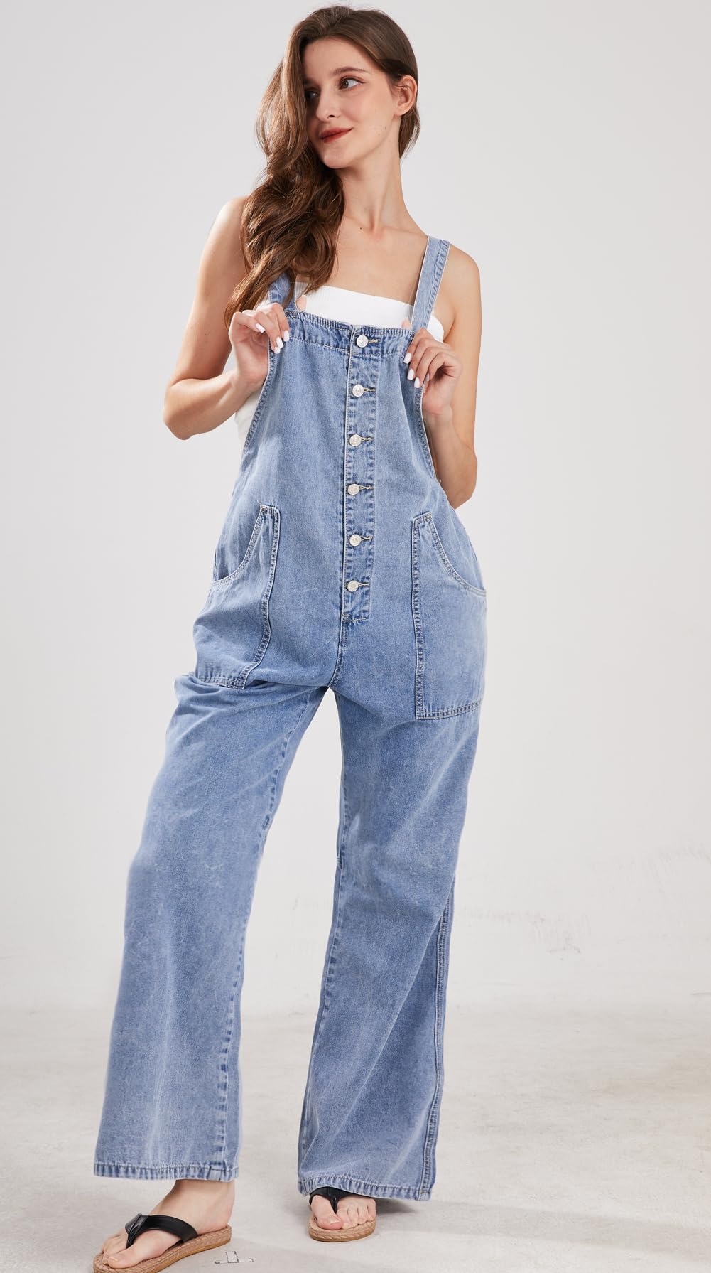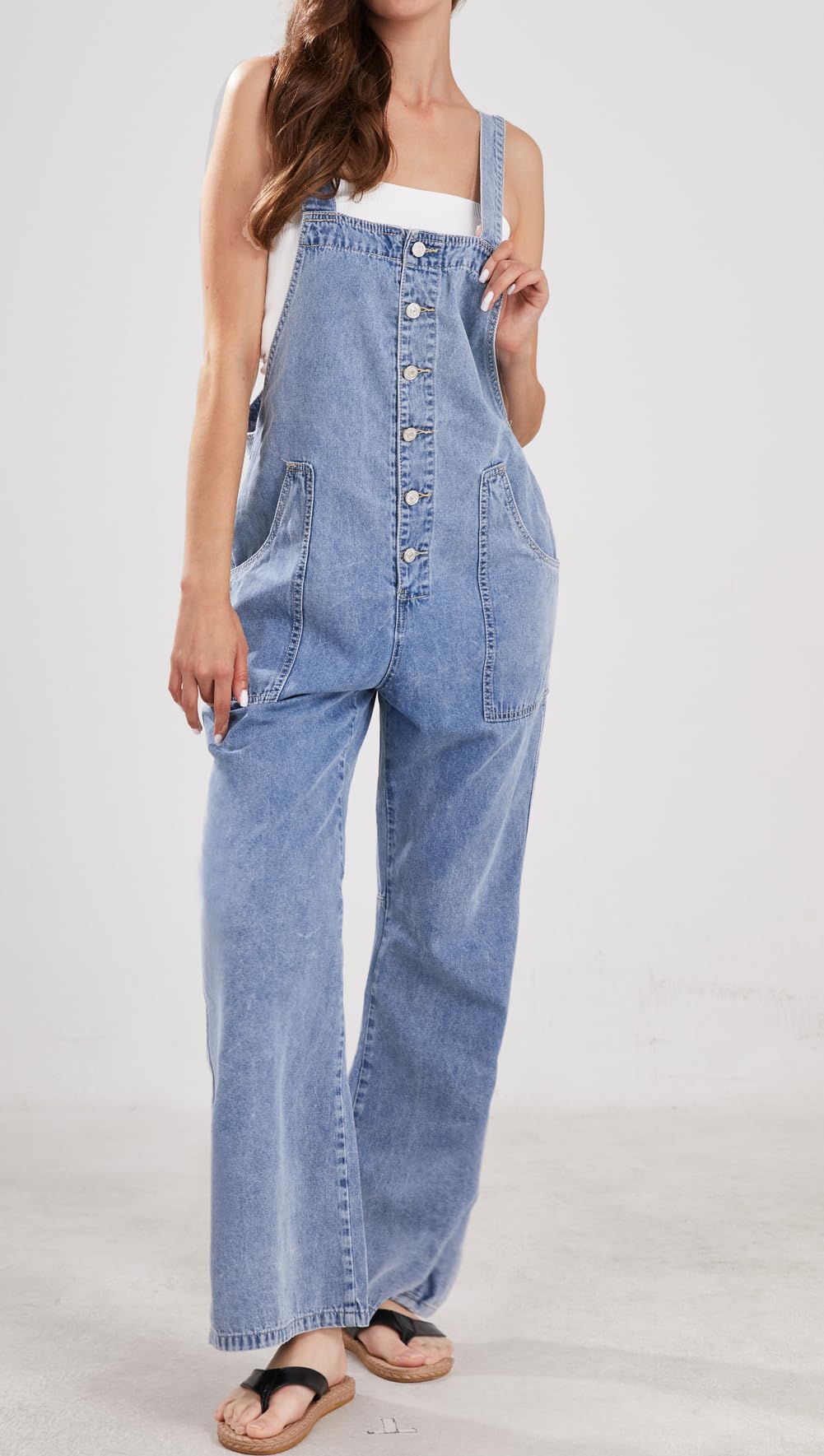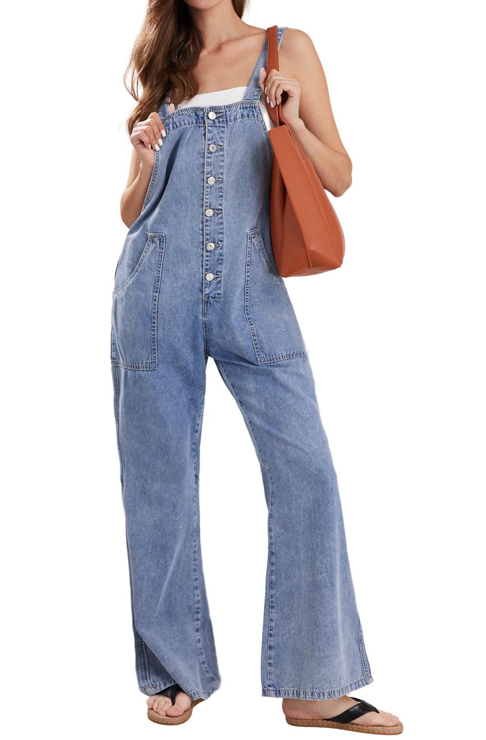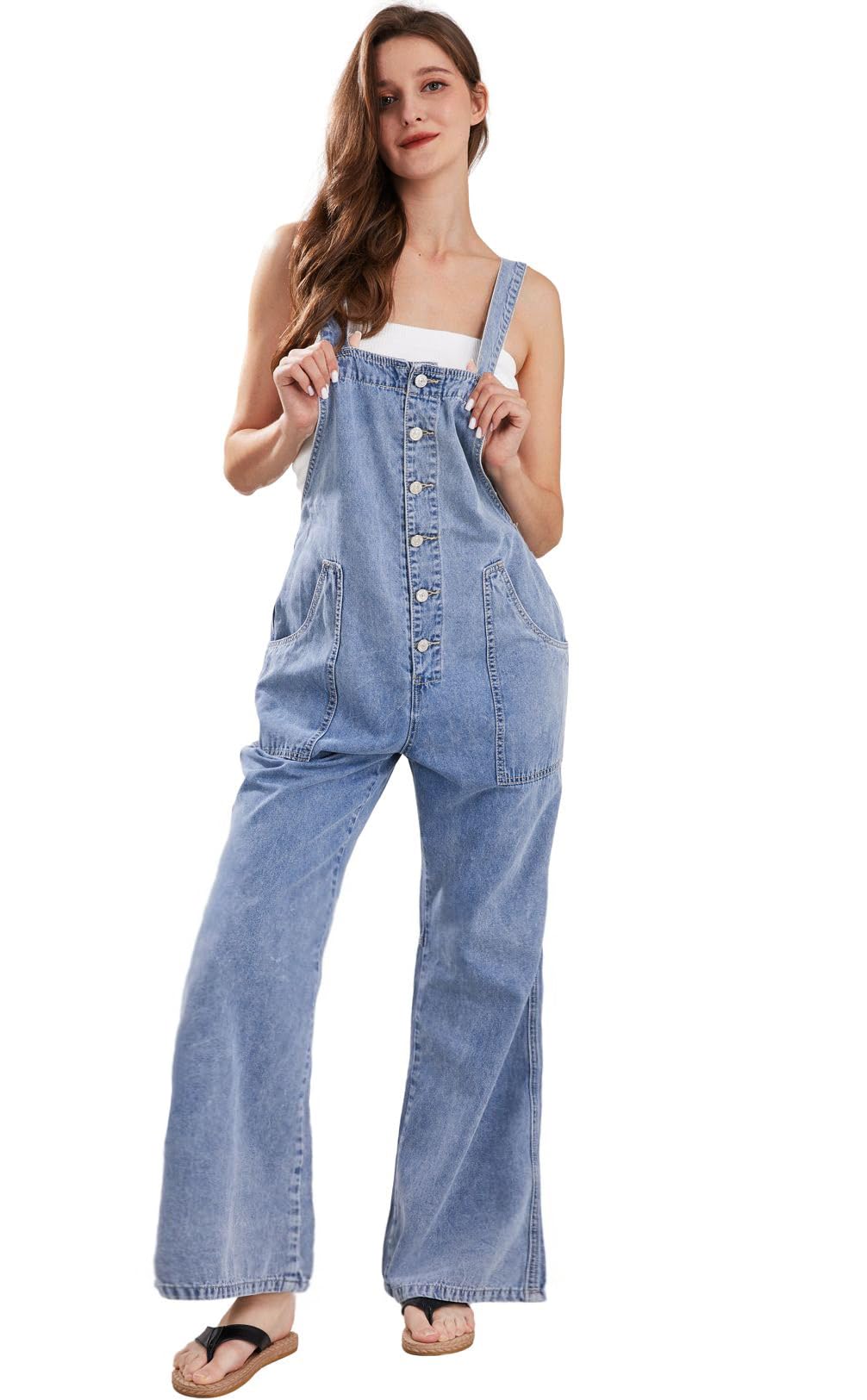Details: CHARTOU Casual Denim Jumpsuit for Women Overalls Wide Leg Jumpsuit Jeans Denim Bib Overalls Dungaree Pockets One piece wide leg jeans denim jumpsuit for women/ Fitted for spring, summer and spring Adjustable straps with tie knot in back/ Button down bib overalls, easy to put on and take off 【Size Guide for WOMENS OVERALLS】----XS=US 0-2, S=US 4-6, M=US 8-10, L=US 12-14, XL=US 16-18, XXL=US 20-22. Please refer to the body size chart in last picture before purchase. 【SELLING POINTS for WIDE LEG JEANS】----- Button up style/ Tie knot back/ Suspender jumpsuit/ Sleeveless/ 2 Side pockets and rear pockets/ Wide leg jumpsuit jeans/ Patchwork pants flared jumpsuit/ Solid color- Blue overalls women 【VERSATILE DENIM OVERALLS】---- Weekend denim jumpsuit for women overalls, daily wear jean overalls for women loose fit flare jumpsuits for women dungaree, streetwear wide leg jeans jumpsuit for women bib overalls women comfy jumpsuits for women, holiday vacation denim overalls for women flared jumpsuit wide leg jumpsuits for women suspender bib overalls, night club hippie clothes for women blue overalls women denim romper denim outfit for women jumper patchwork pants baggy jeans for woman loose overalls for women Womens Overalls Denim Loose Fit Wide Leg Bib Stretch Baggy Jeans Jumpsuit Y2K Comfy