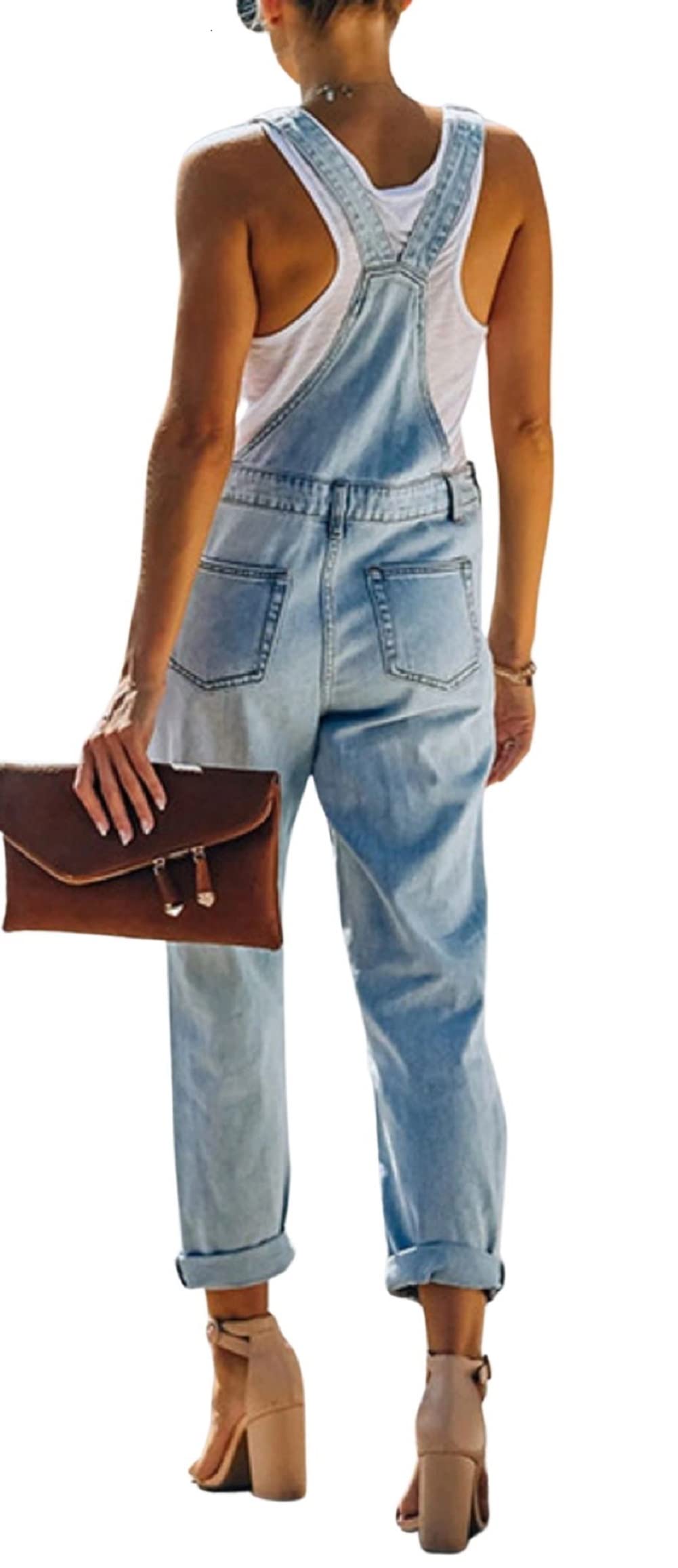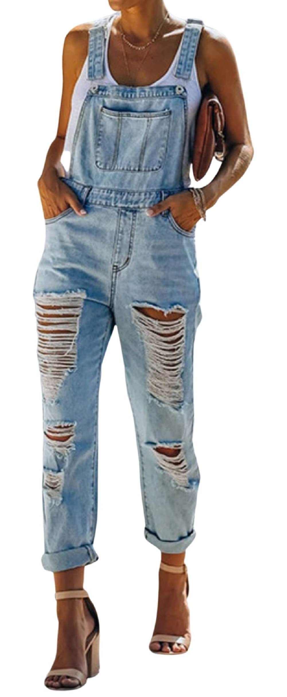 • Features: strap hooks closure, one bib pocket, distressed broken holes, racer back design, roll-up cuffs, lightweight for summer casual wear
