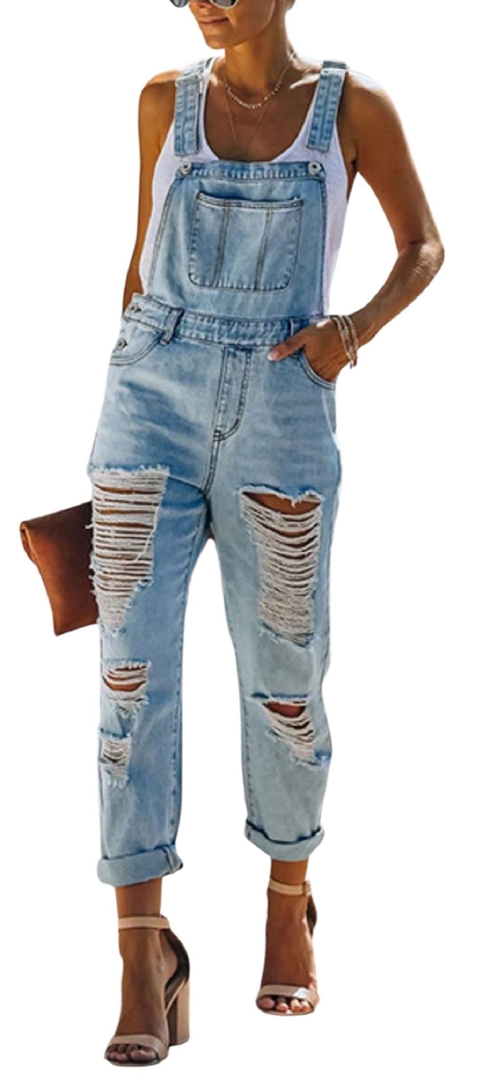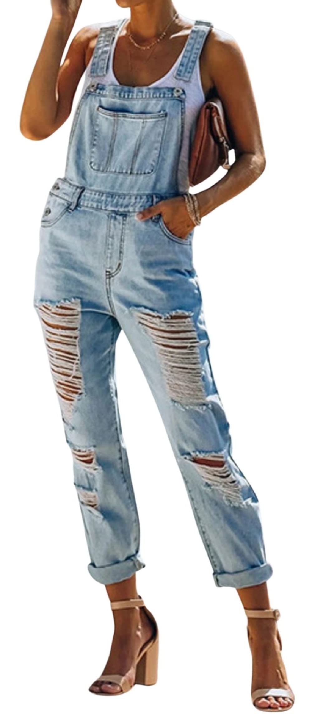 • Simple but trend-on: women’s summer suspender straps mid-rise ripped regular fit jean overall