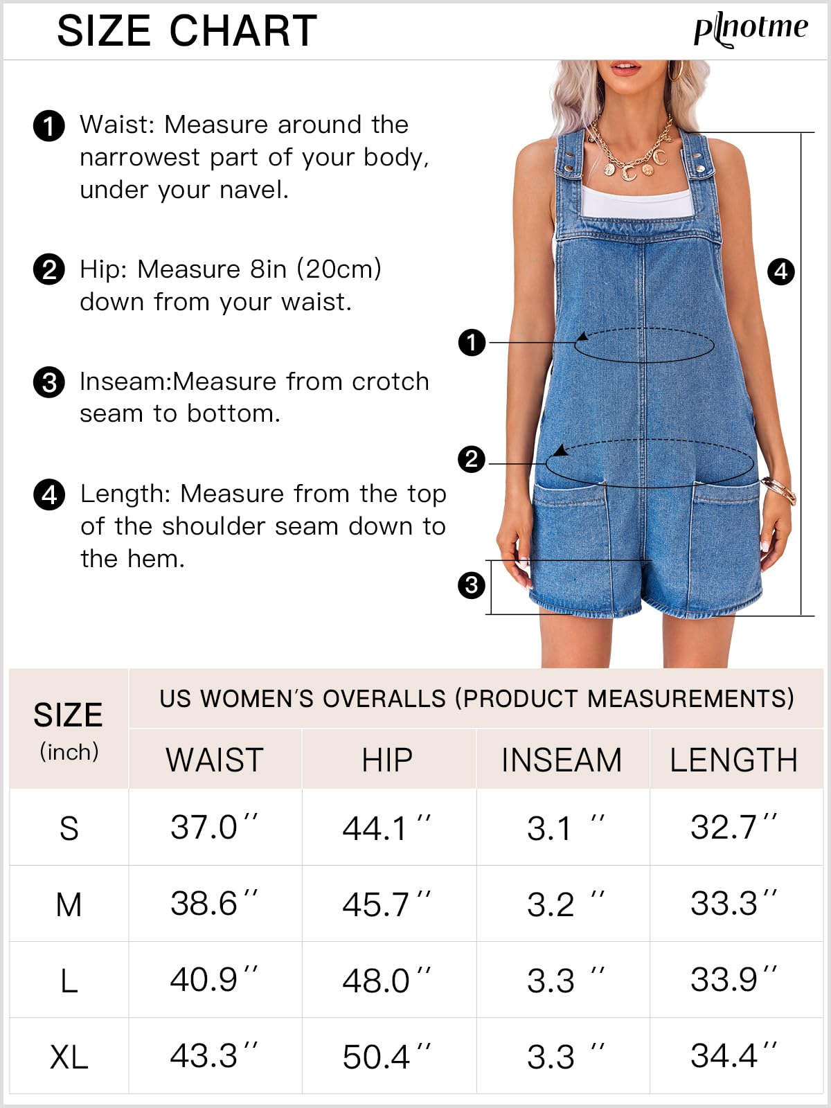 PLNOTME Womens Denim Short Overalls Summer Baggy Adjustable Strap Shortalls Overall Jumpsuit with Front Pockets