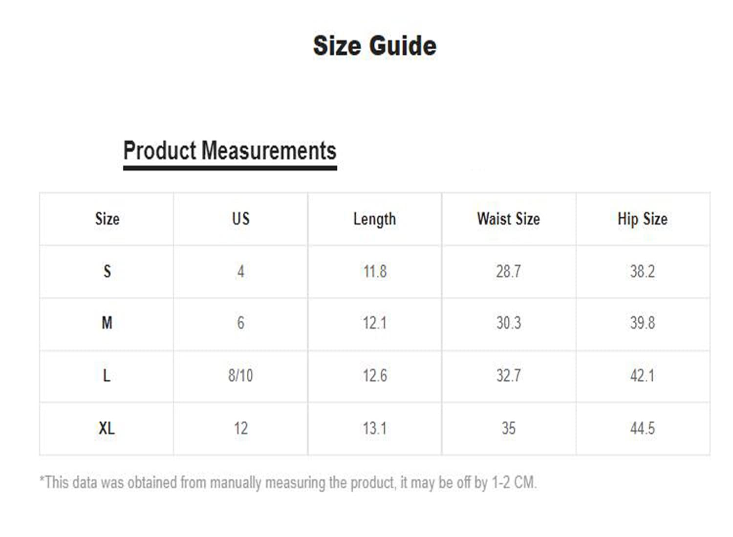 Small: Length: 11.8", Waist Size: 28.7", Hip Size: 38.2"