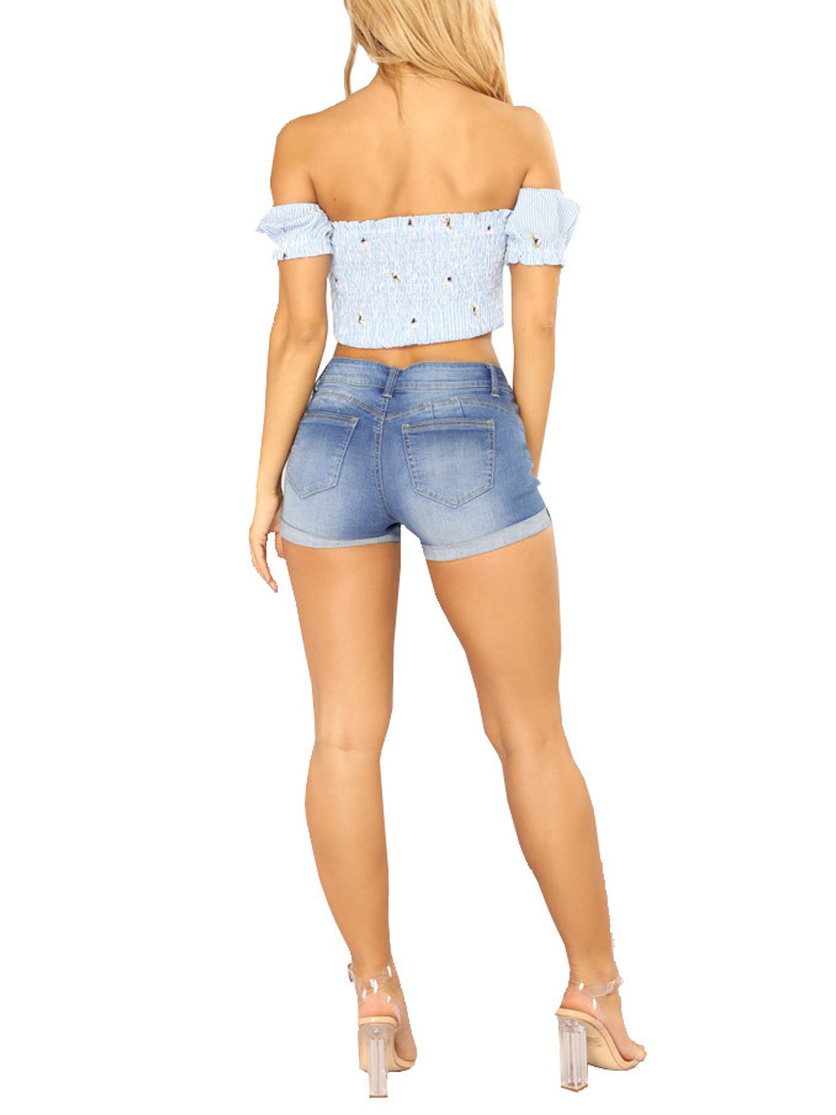 Govc Women Casual Summer Mid Waist Stretchy Denim Jean Shorts Junior Short Jeans Light Blue