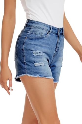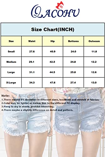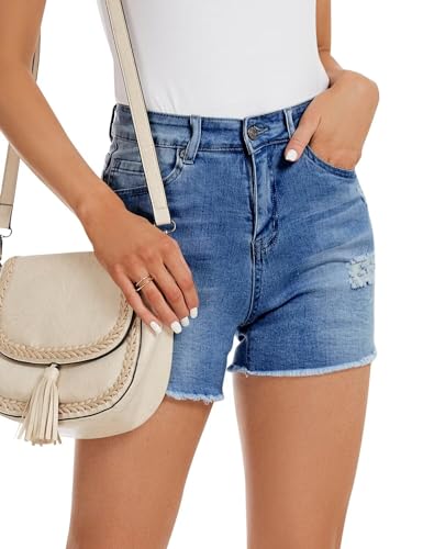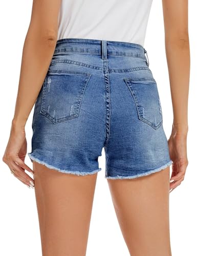 QACOHU 2024 Jeans Shorts Women Summer Mid Rise Frayed Ripped Raw Hem Cut Off Denim Shorts MBlue XL