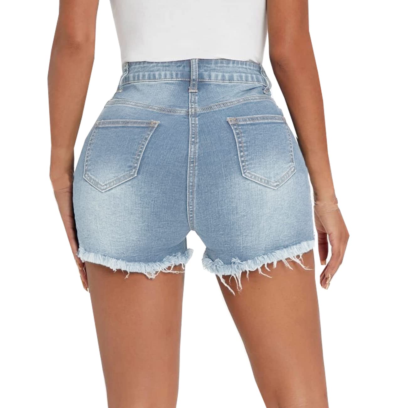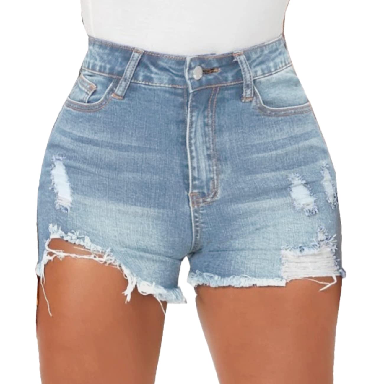 Yyibsones Women Summer High Waisted Casual Ripped Stretchy Denim Shorts Frayed Raw Hem Shorts Jeans (Light Blue 2, XXL)