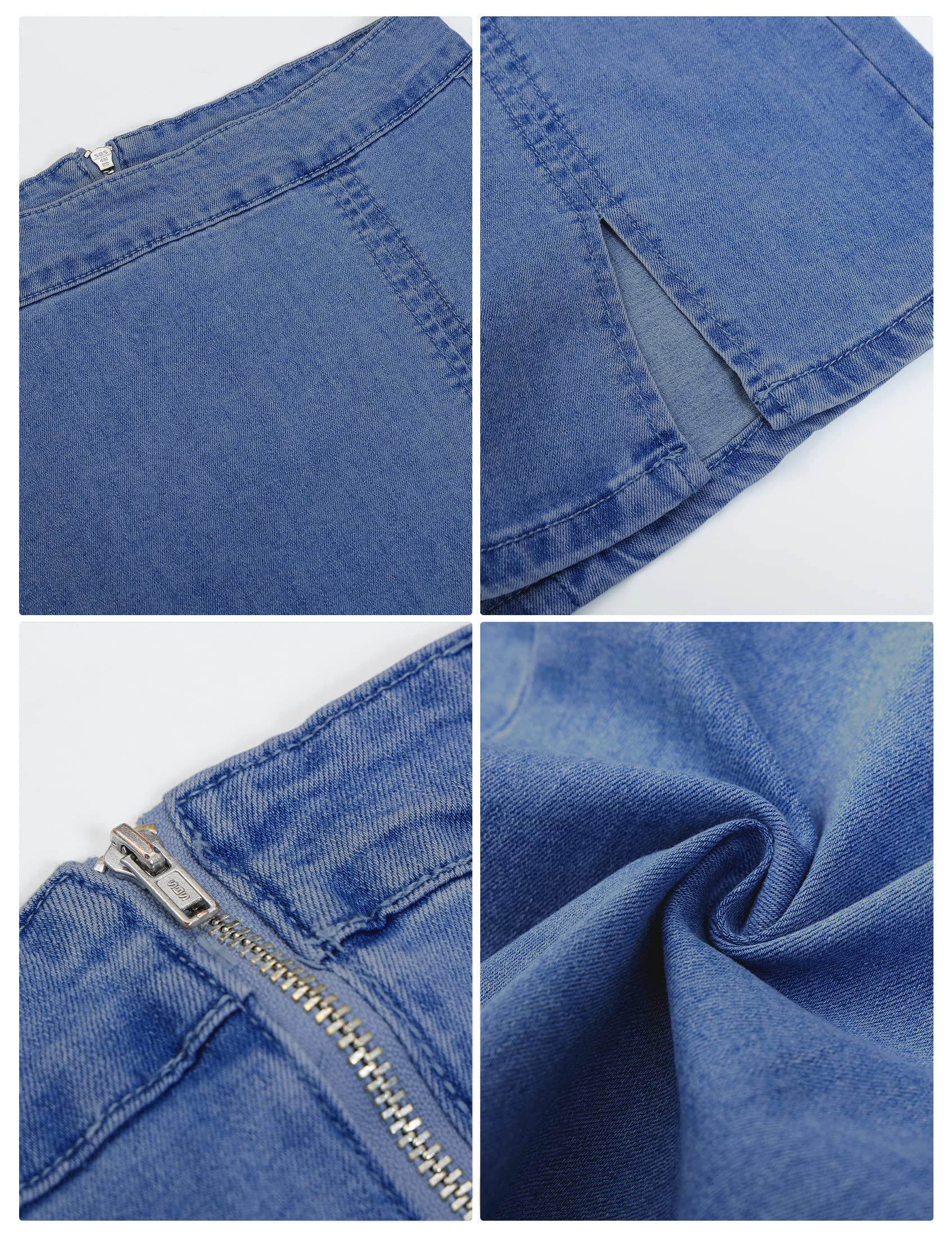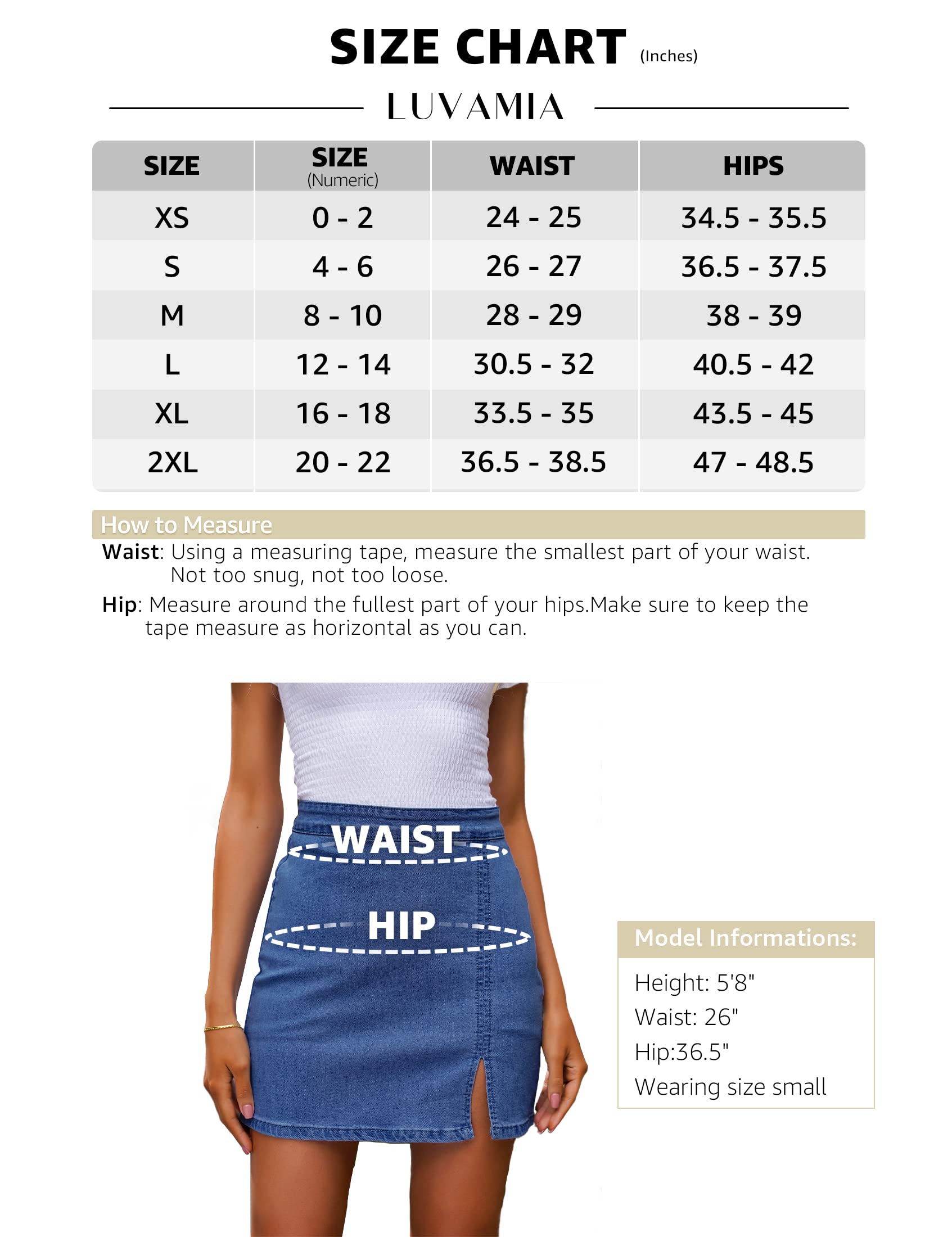 luvamia Jean Skirt for Women with Slit High Waisted Bodycon Stretch Pencil Mini Short Denim Skirts Women Skirt Y2K Skirts Denim Mini Skirts for Women Classic Blue Size Medium Size 8 Size 10