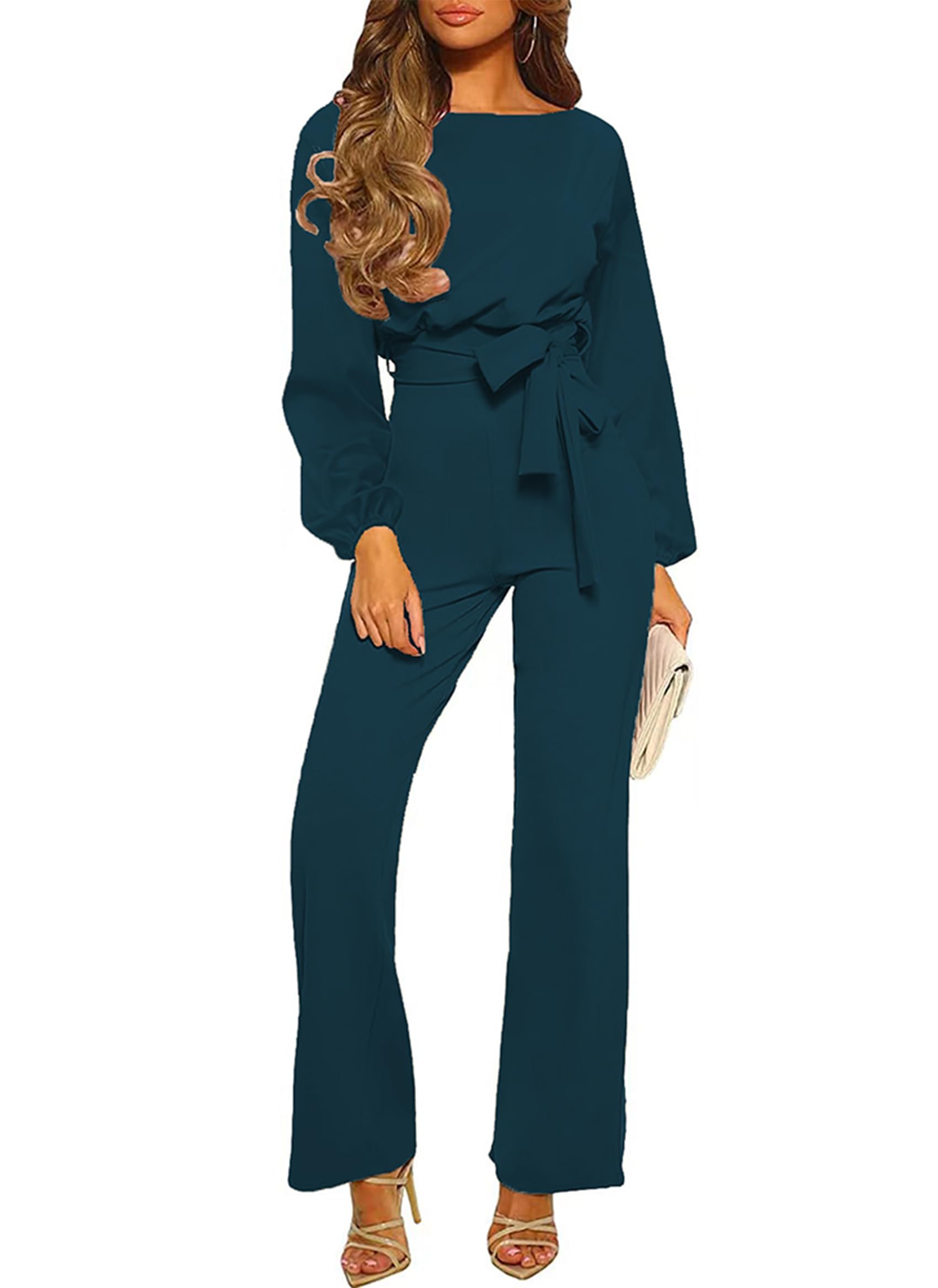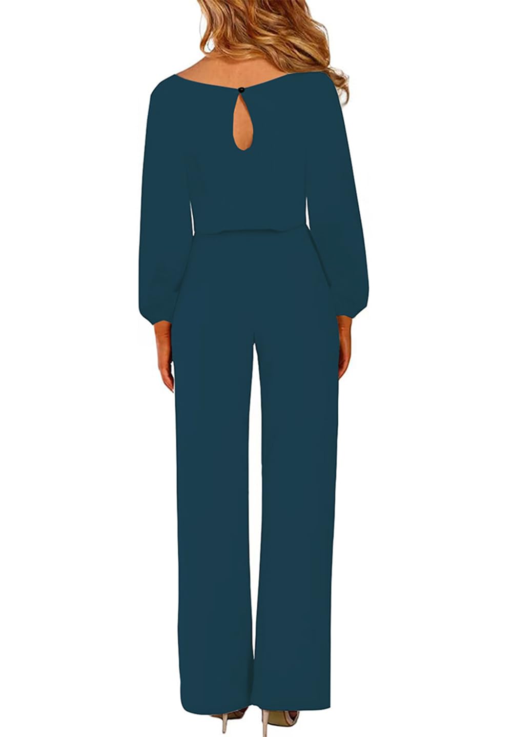 AIIYYQB Womens Sexy Long Sleeve Wide Leg Jumpsuit Elegant Cocktail Evening Party Romper with Belt