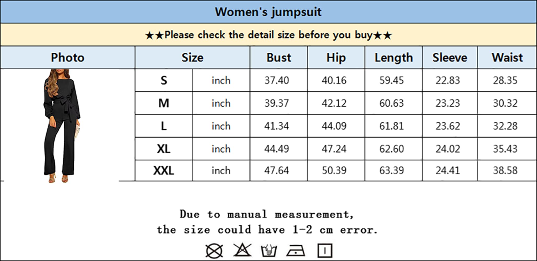 • Features: Womens jumpers and rompers casual. Long sleeved, high waisted wide leg pants, round neck, with belt, leaky back, single button closure at the back. The long sleeved design is suitable for wear all year round. Unique single button closure, sexy and elegant and fashionable.