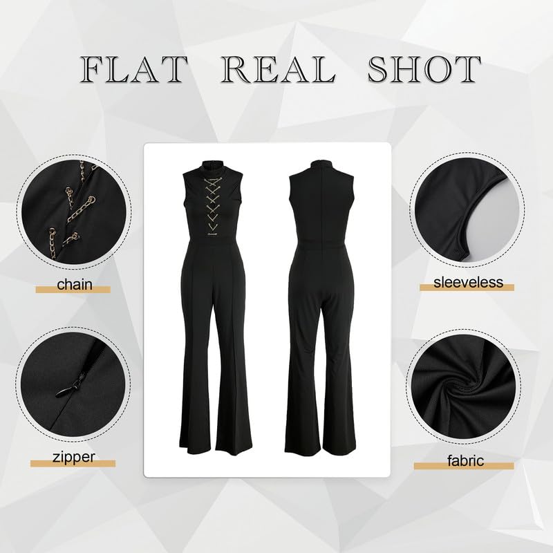 SUZONANA Womens Sexy Stand Collar Sleeveless High Waist One Piece Pant Outfit Wide Leg Jumpsuit Romper S