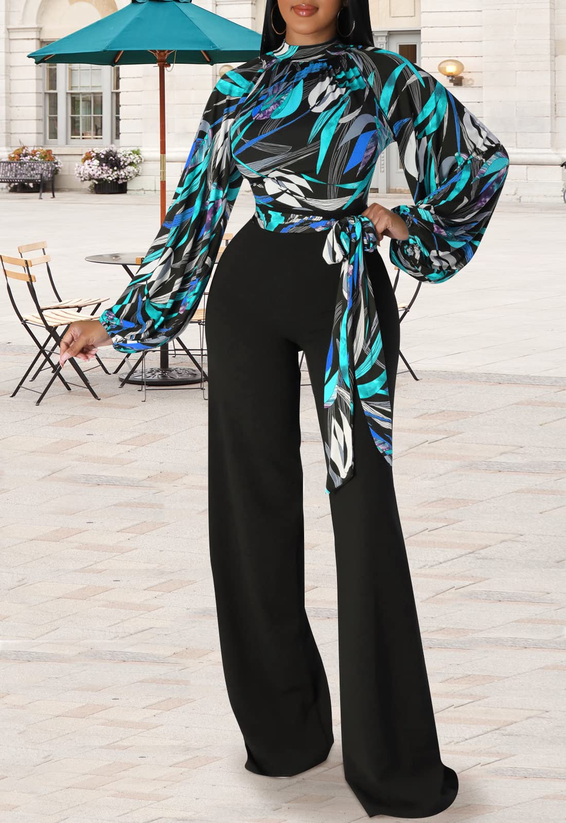 • FEATURE: Casual elegant jumpsuits for women features zipper back, Long Sleeves,Loose Fit,High Waist,Wide Leg, Self Tie Waist Belt.