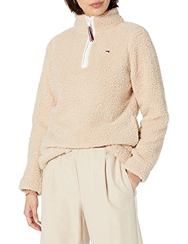 Tommy Hilfiger Women's 1/4 Zip Sherpa Jacket, Light Fawn, Medium