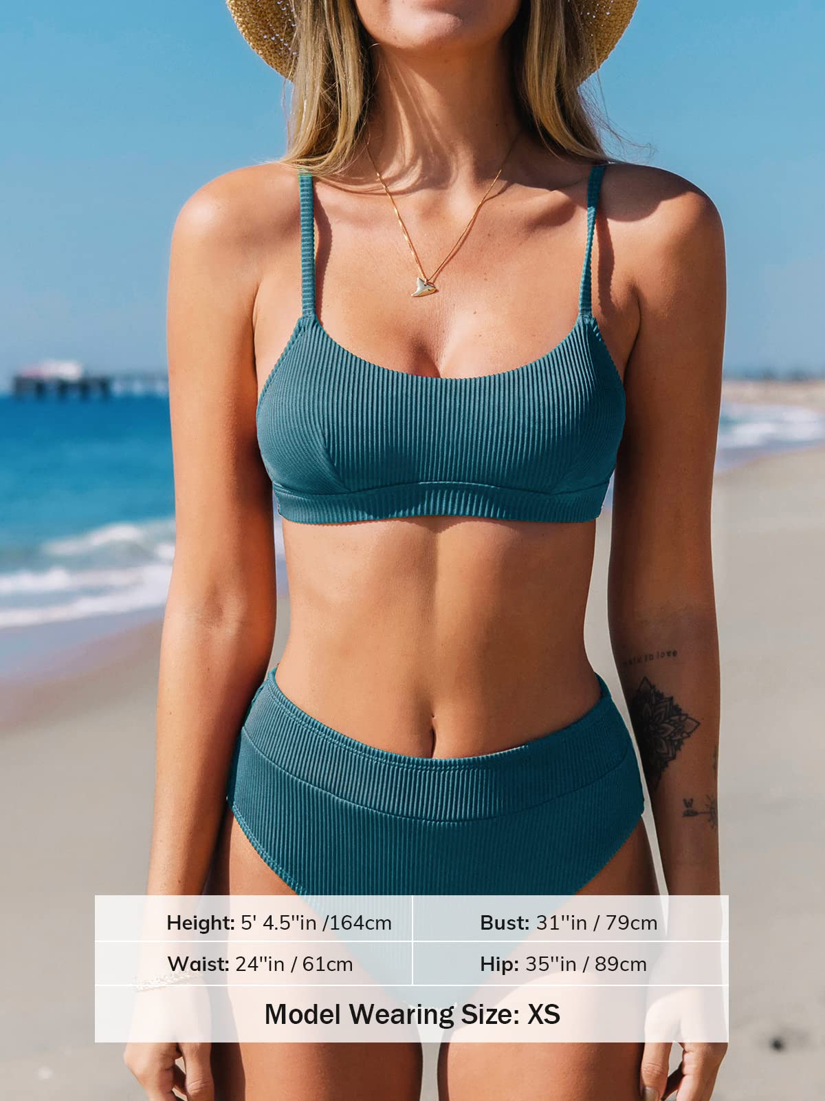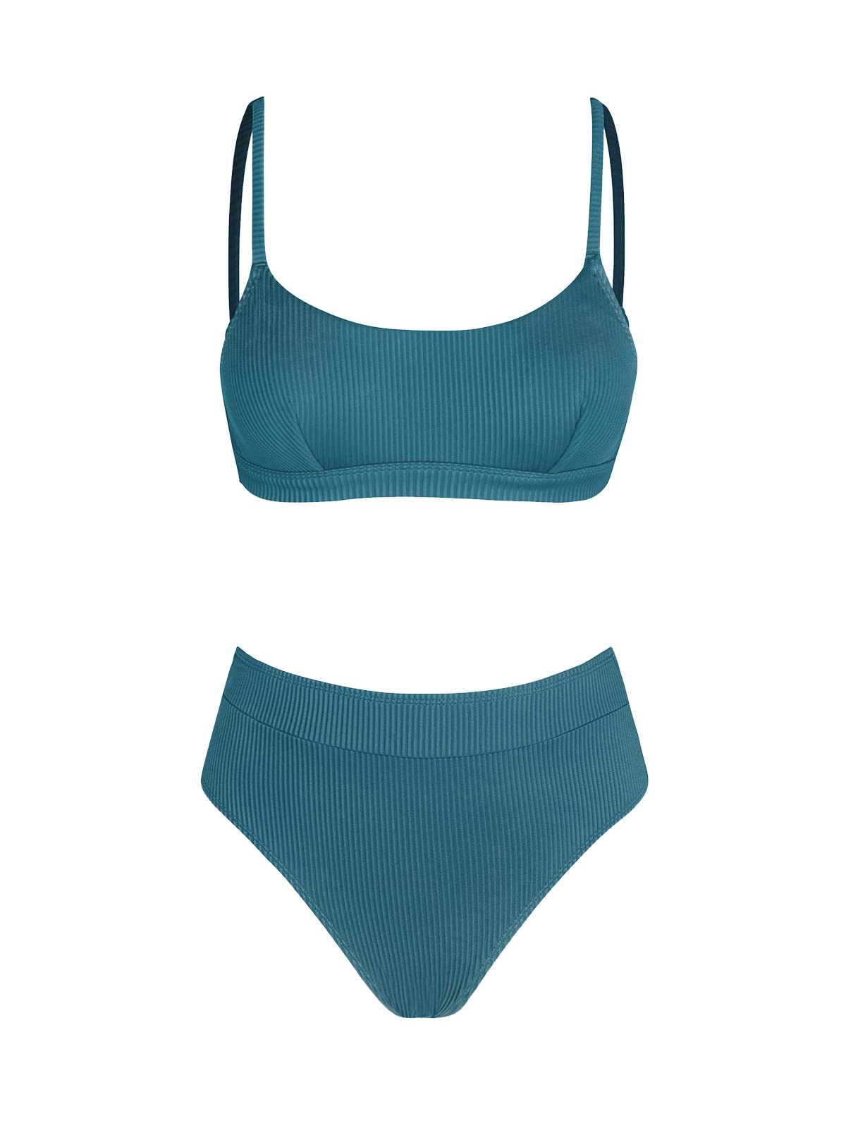 CUPSHE Bikini Set for Women Two Piece Swimsuits High Waisted Adjustable Spaghetti Straps Back Hook Backless, M Aegean Blue