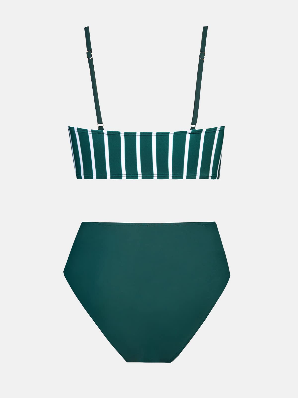 CUPSHE Bikini Sets for Women Two Piece Swimsuits High Waisted Twist Front Adjustable Spaghetti Straps V Neck Back, M Green Stripes