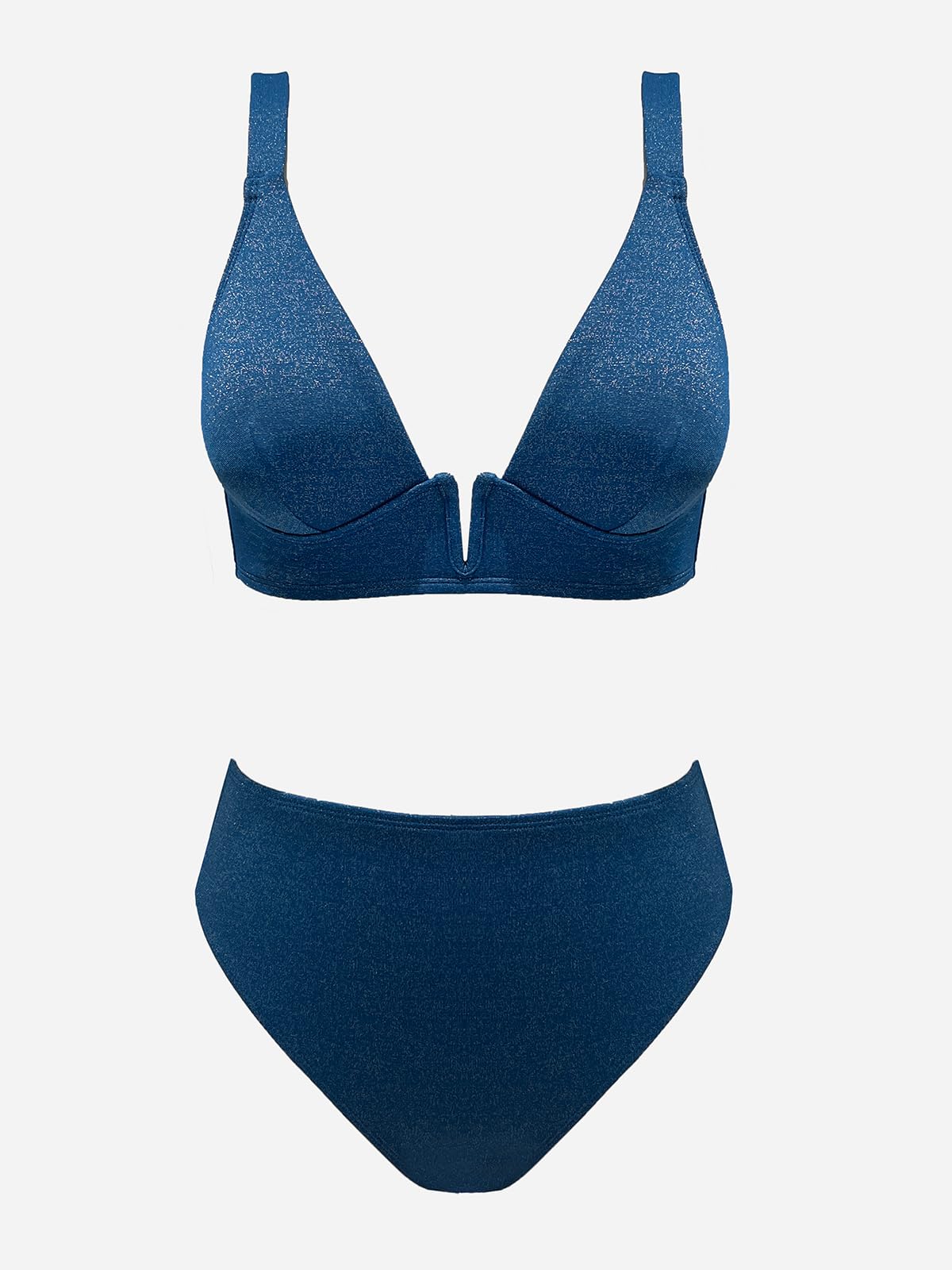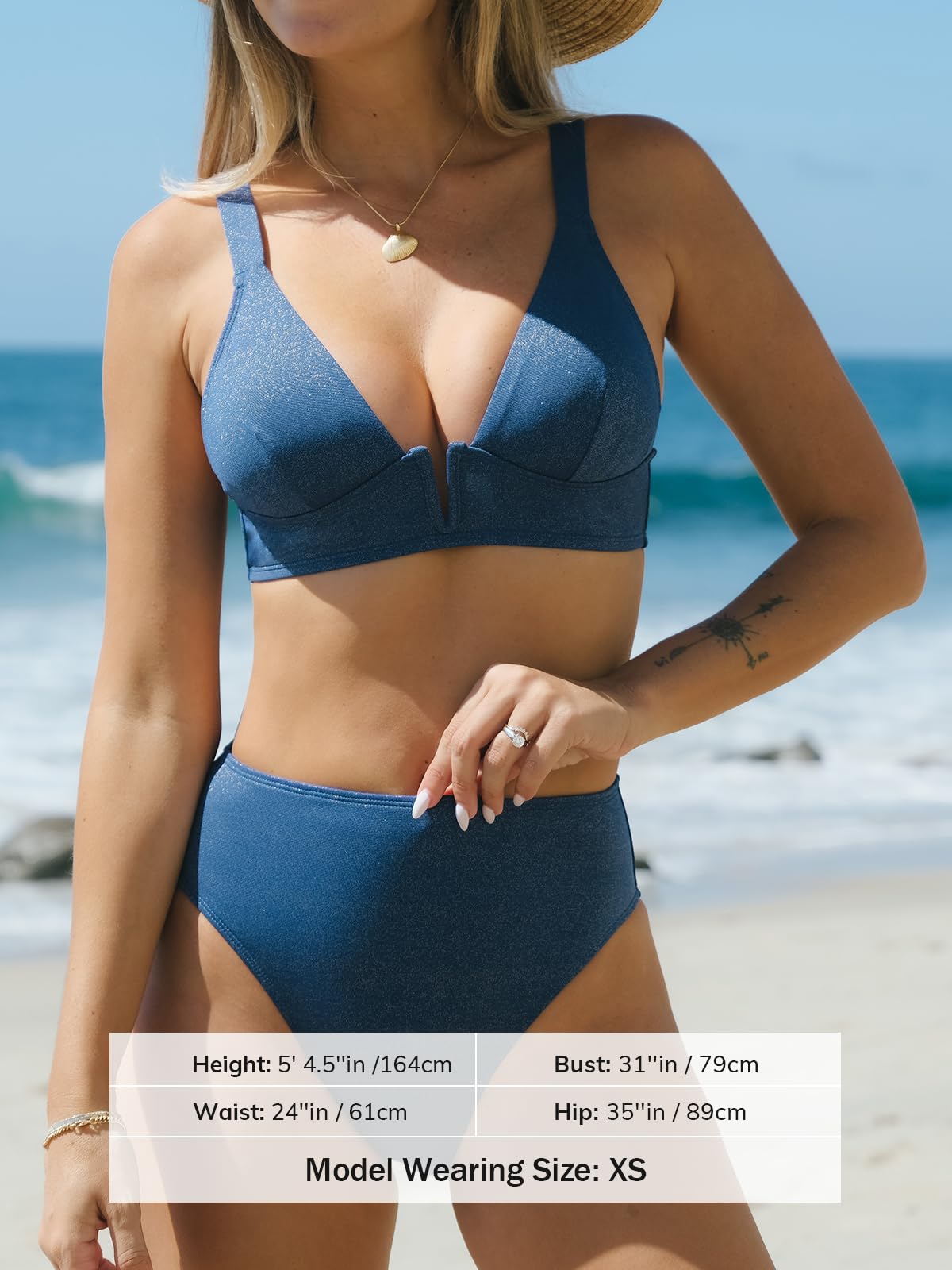 • Design: This Bikini Sets Highlights an Elegant V Neck and U Wire Detail, Paired with Wide Straps and a Convenient Back Hook. The High Waisted Bottoms Offer a Comfortable Fit, All in a Dazzling Sparkle Fabric for a Touch of Glamour.