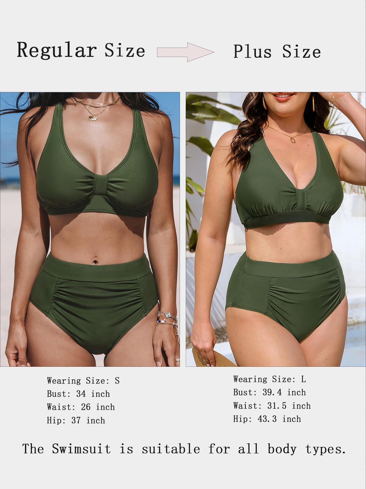 • Design: Experience elegance with this bikini sets featuring scoop neck, knot front, shirred high waisted bottom, and a back self-tie for added convenience. Elevate your style effortlessly.