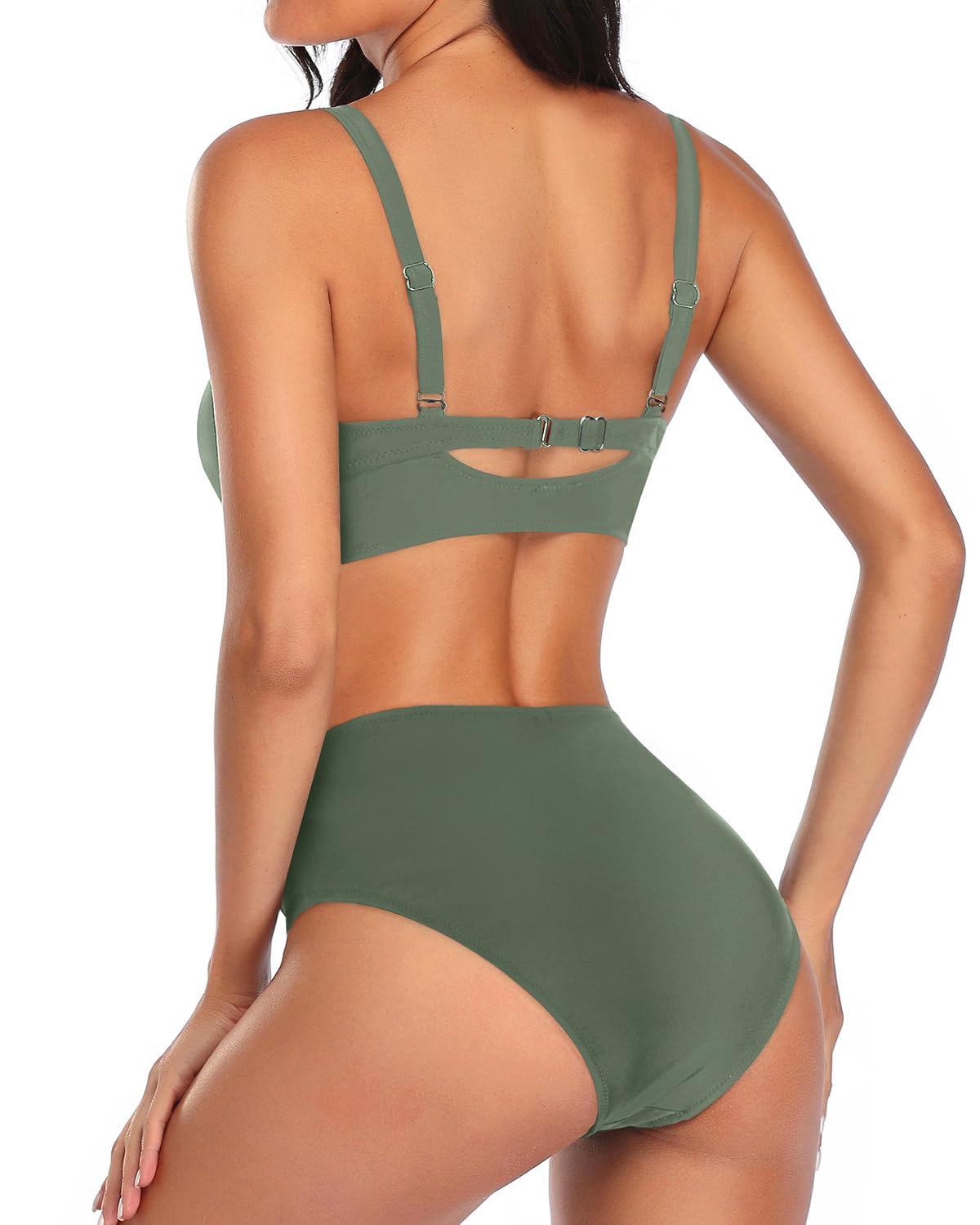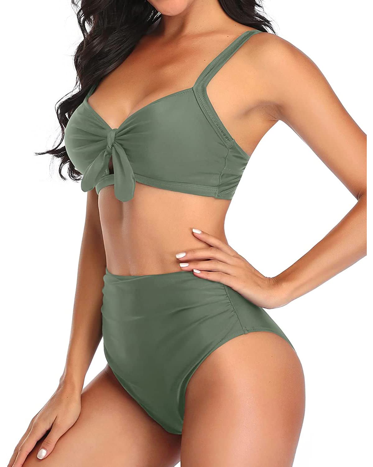 Tempt Me Women Olive Green Two Piece Swimsuits High Waisted Bikini Set Tummy Control Full Coverage Ruched Tie Knot Bathing Suits L