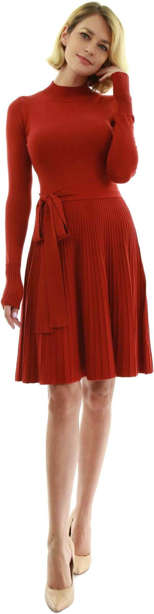 AmͩlieBoutik Women Mock Neck Fit-and-Flare Knit Sweater Dress