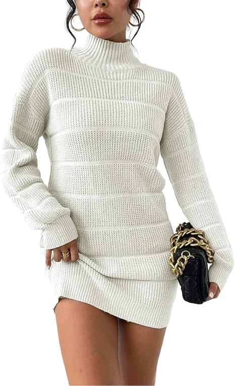 Women's Winter Sweater Dress Long Sleeve Turtleneck Chunky Knit Dress Mini Pullover Bodycon Sweater Dress
