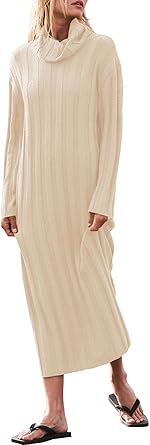 Yousify Women's Sweater Dresses 2024 Ribbed Knit Turtleneck Long Sleeve Maxi Dress Fall Winter Long Dresses