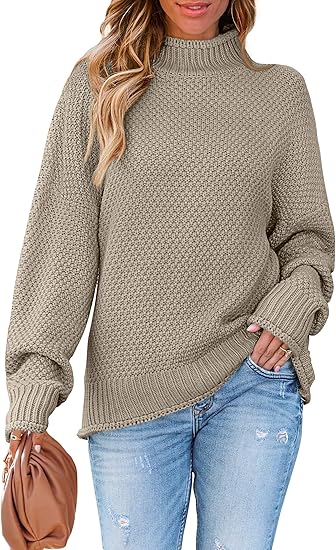 ZESICA Women's 2024 Turtleneck Batwing Sleeve Loose Oversized Chunky Knitted Pullover Sweater Jumper Tops
