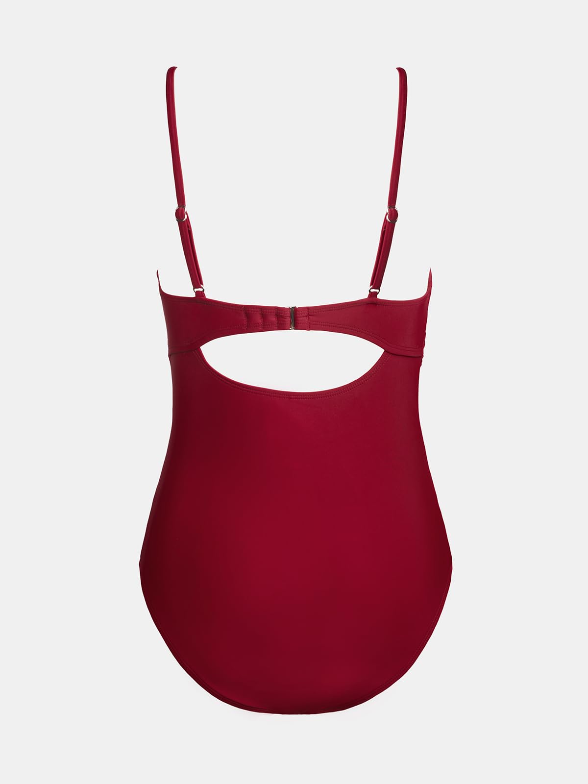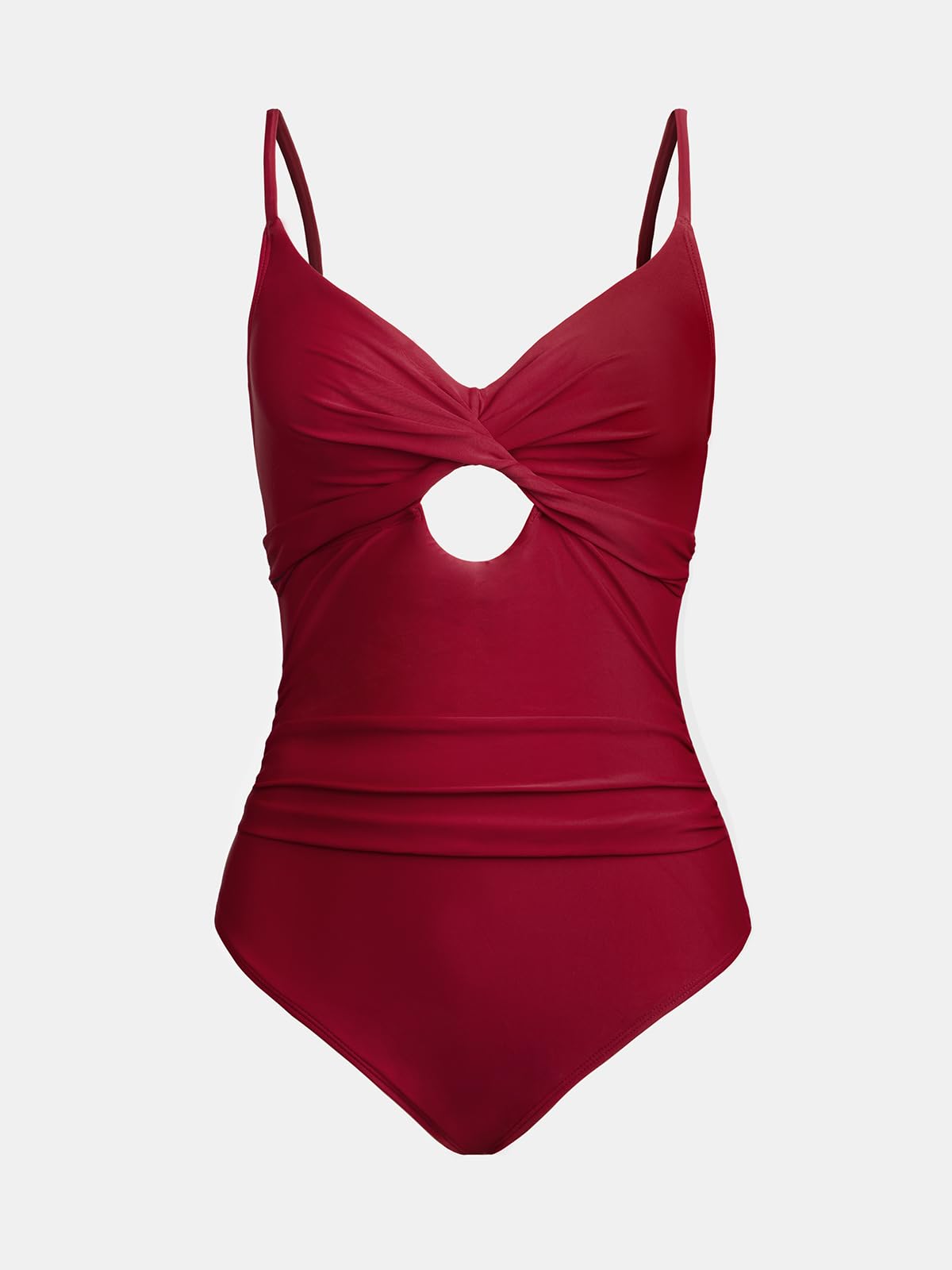 CUPSHE One Piece Swimsuit for Women Bathing Suits Twist Front Cutout Adjustable Straps Ruched Swimwear M Cherry-red