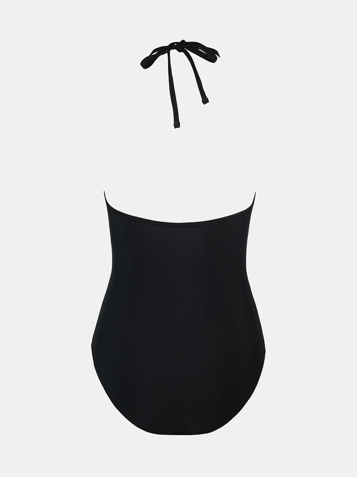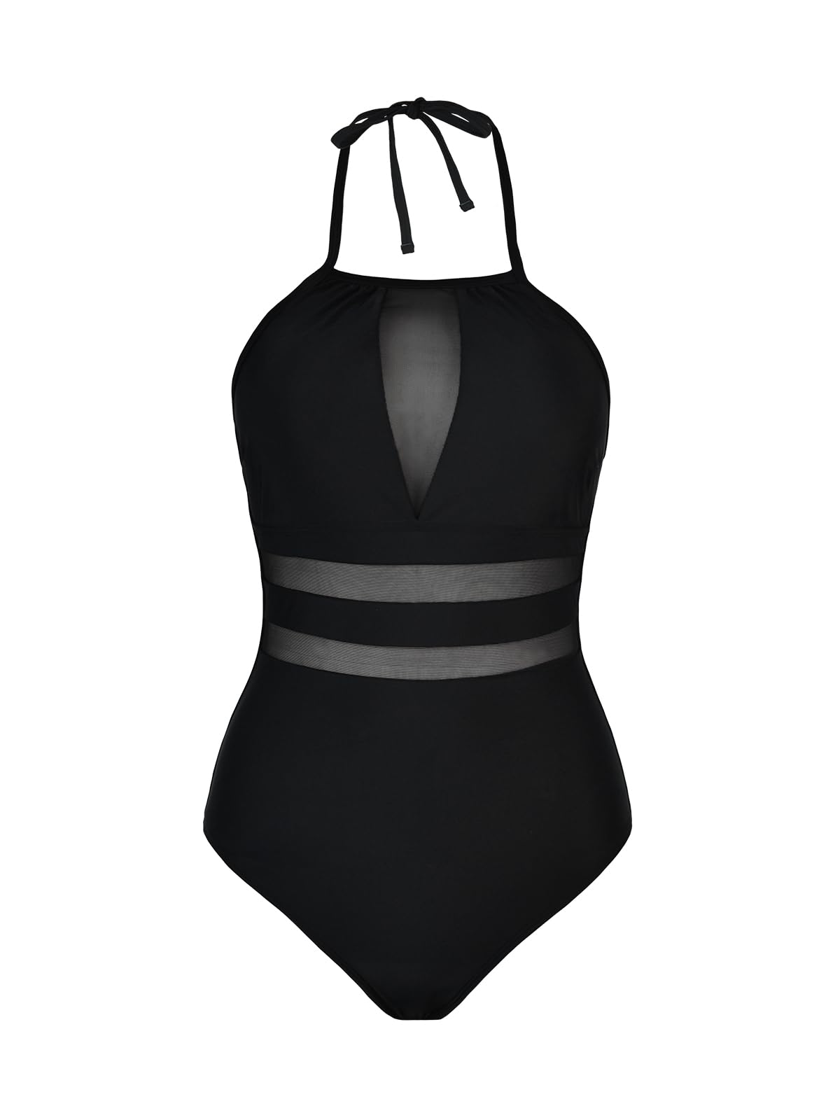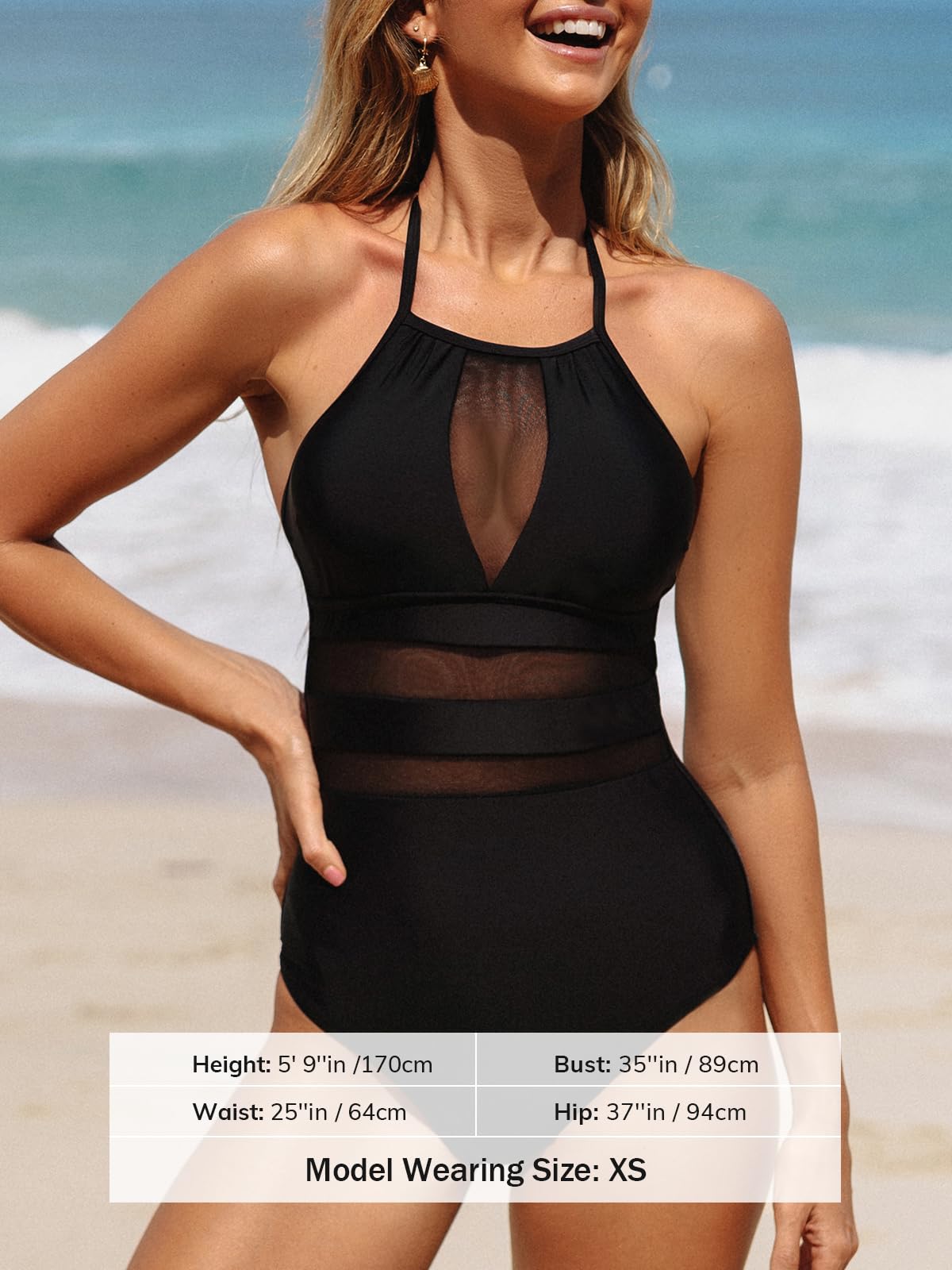 CUPSHE Women One Piece Bathing Suit Halter High Neck Cutout Mesh Slimming Swimsuit, M Black