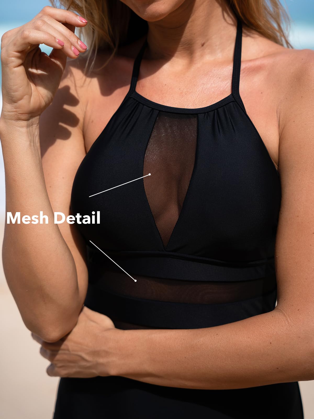 • Design: This Halter One Piece Swimsuit Features with High Neck and Mesh Cutout Make You Looks Flattering. Slimming Bathing Suit with Sleeveless Design with Back Self Tie Can Make You Feel Comfortable.