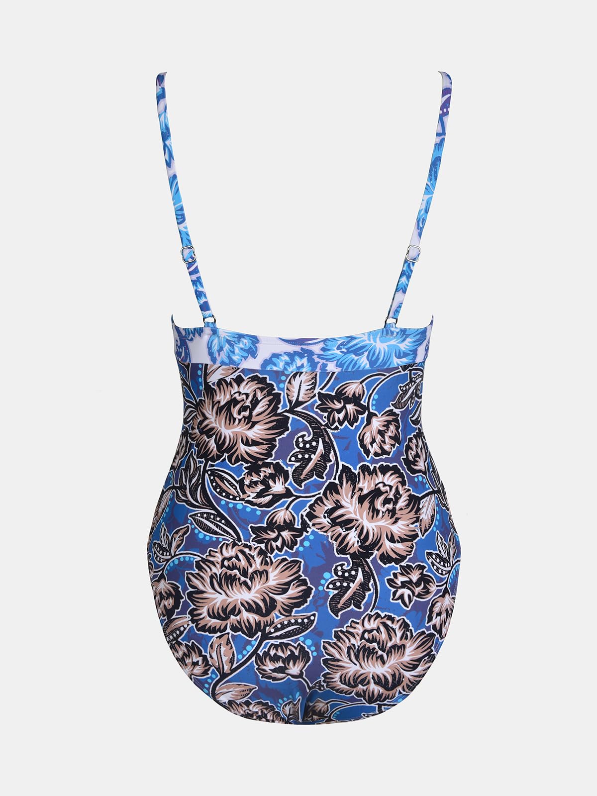 • Design: A figure-flattering paneled floral one piece swimsuit deserves space in your getaway bag, featuring a deep v neck, self tie detail, tummy control front, and adjustable spaghetti straps. About cup style: with removable pads