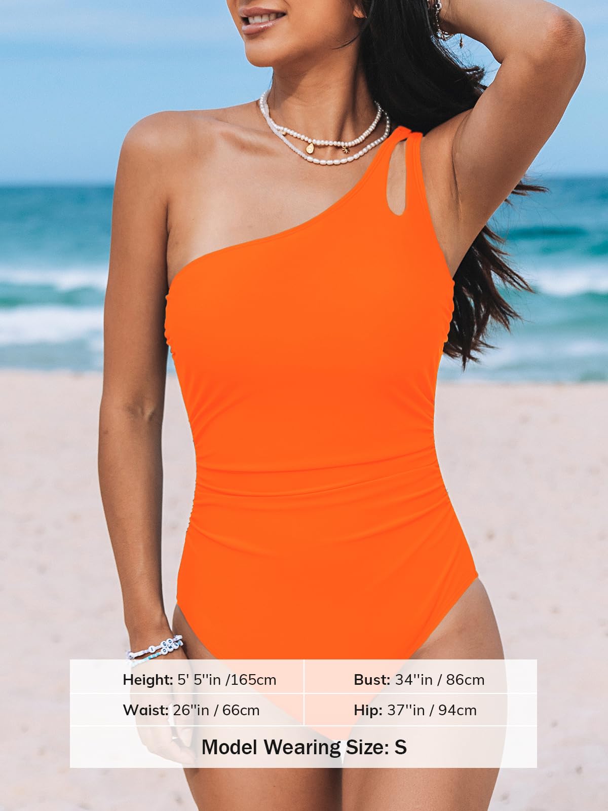 CUPSHE Women's One Piece Swimsuit Tummy Control Bathing Suit One Shoulder Fixed Strap Slimming Swimwear M Neon Orange