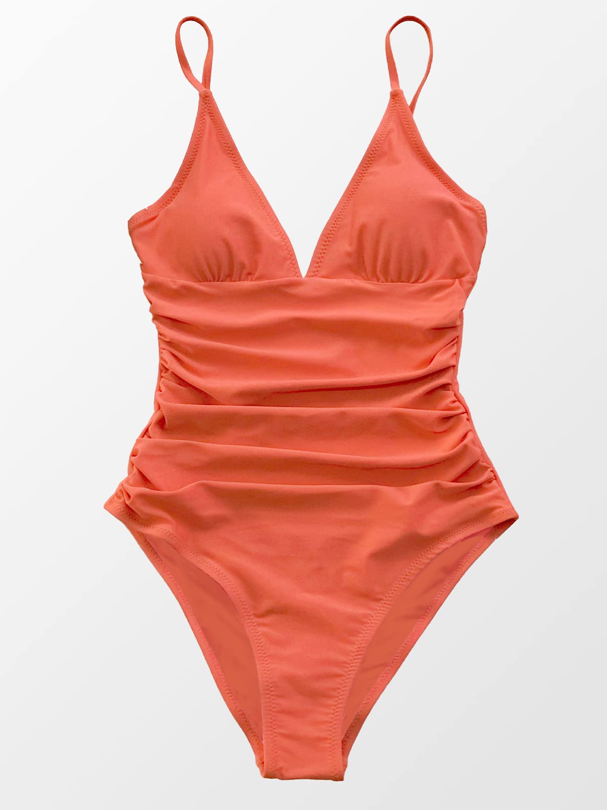 CUPSHE Womens Swimwear V Neck Shirring Swimsuit,Orange, Medium