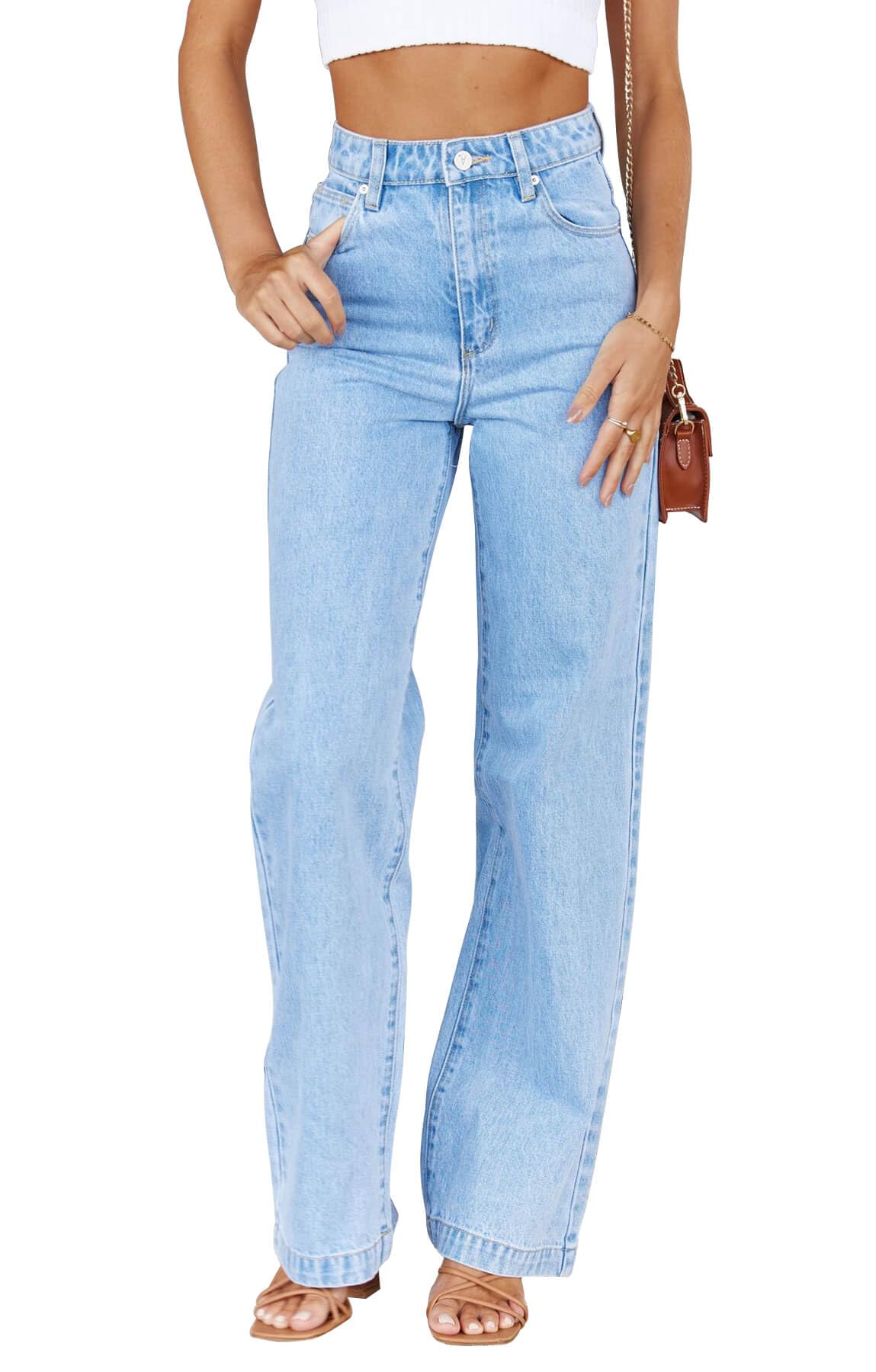 Cicy Bell Women's High Waisted Jeans Boyfriend Baggy Straight Leg Casual Denim Pants with Pockets Light Blue