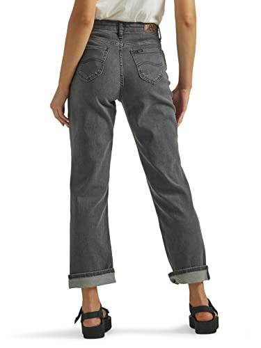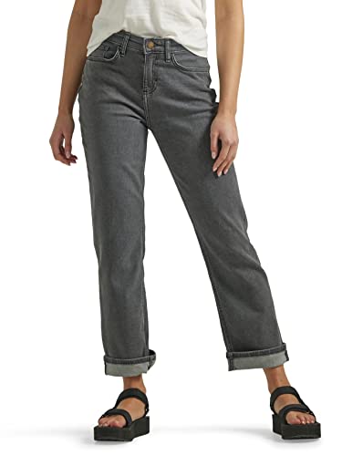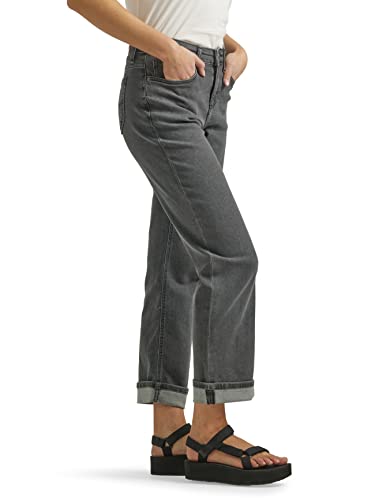 Lee Women's Mid Rise Boyfriend Jean, Washed Black, 16