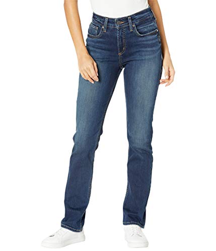 Silver JEANS CO Women's Avery High Rise Curvy Fit Straight Leg Jeans, Dark Wash EPX495, 29W x 31L