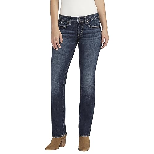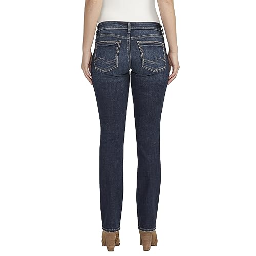 Silver Jeans Co. Women's Britt Low Rise Curvy Fit Straight Leg Jeans, Dark Wash ECF498
