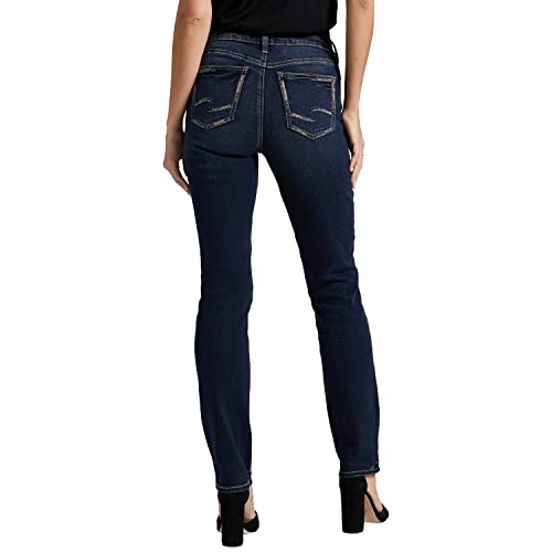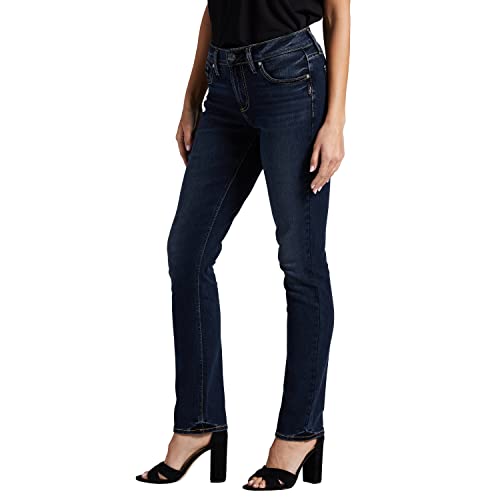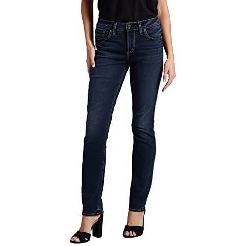 Silver Jeans Co. Women's Elyse Mid Rise Comfort Fit Straight Leg Jeans, Blue, 27W x 33L