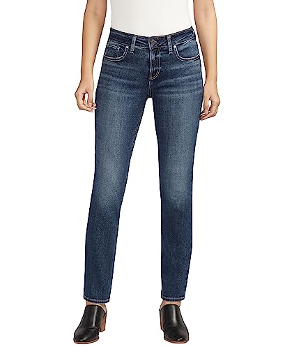 Silver Jeans Co. Women's Elyse Mid Rise Comfort Fit Straight Leg Jeans, Med Wash ECF335, 33W x 31L
