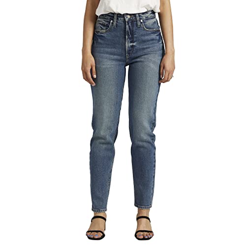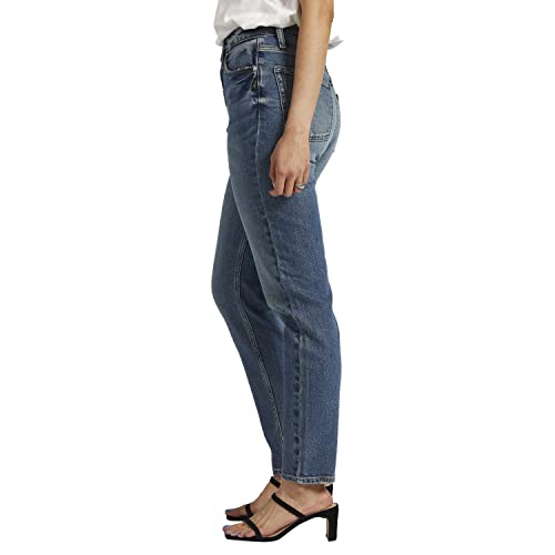 Silver Jeans Co. Women's High Rise Tapered Leg Mom Jean, Med Wash EOE373, 28W x 29L