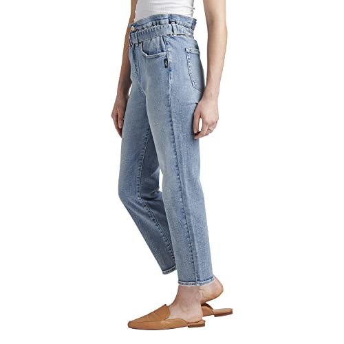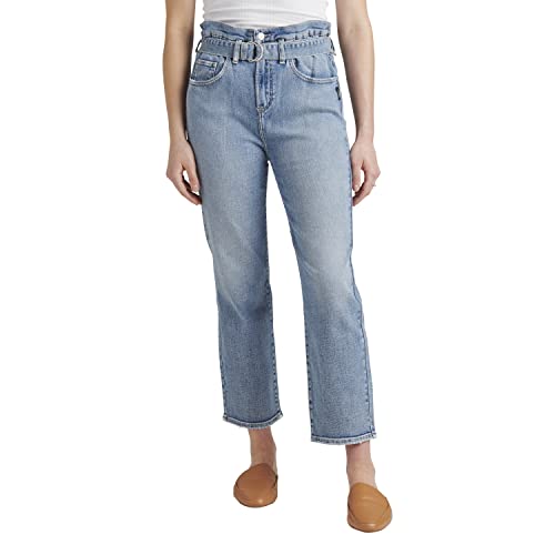 Silver Jeans Co. Women's Paper Bag High Rise Straight Crop Jeans, Med Wash SOC277, 28W x 27L