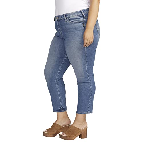 Silver Jeans Co. Women's Plus Size Elyse Mid Rise Straight Leg Crop Jeans, Indigo