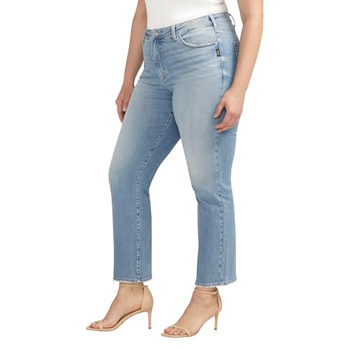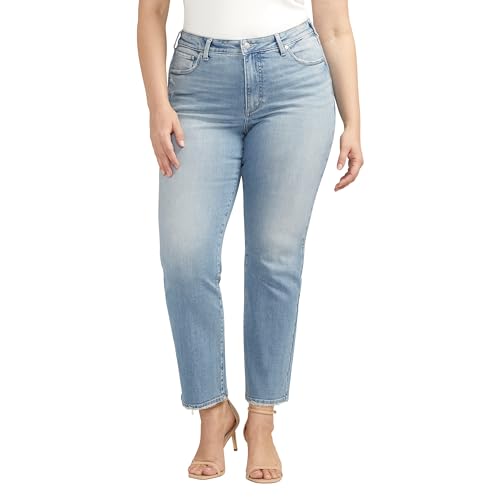 Silver Jeans Co. Women's Plus Size Isbister High Rise Straight Leg Jeans, Med Wash SCV288