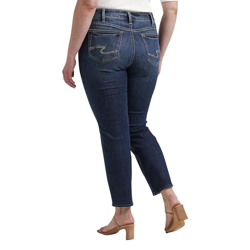 Silver Jeans Co. Women's Plus Size Suki Mid Rise Curvy Fit Straight Crop Jeans, Med Wash CVS376