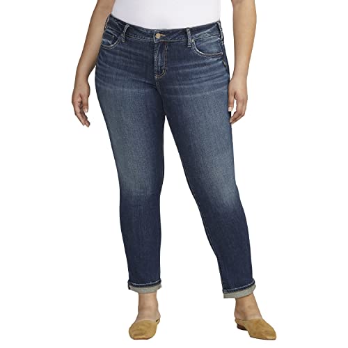 Silver Jeans Co. Women's Size Girlfriend Mid Rise Slim Leg Jeans, Med Wash SCV318, 22 Plus