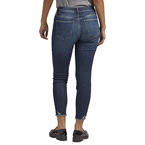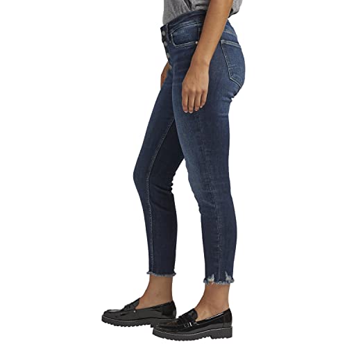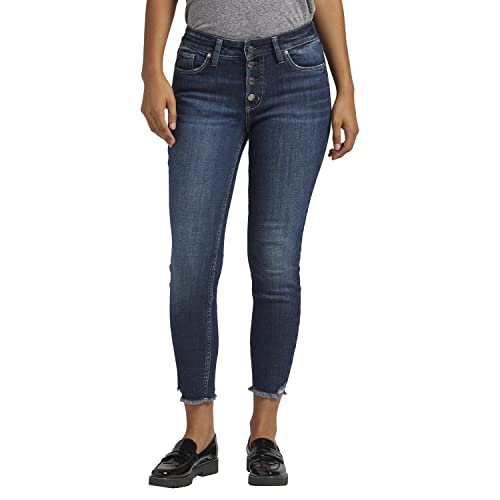 Silver Jeans Co. Women's Suki Mid Rise Curvy Fit Skinny Crop Jeans, Dark Wash EAE463