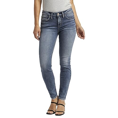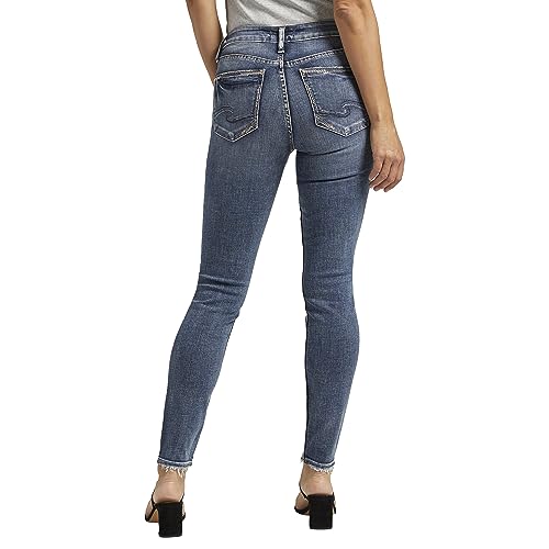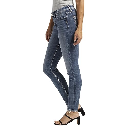 Silver Jeans Co. Women's Suki Mid Rise Curvy Fit Skinny Jeans, Dark Wash Met, 30W x 31L