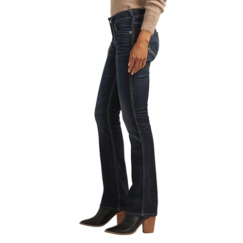 Silver Jeans Co. Women's Suki Mid Rise Curvy Fit Slim Bootcut Jeans, Grey Dark Indigo Rinse, 31W x 31L