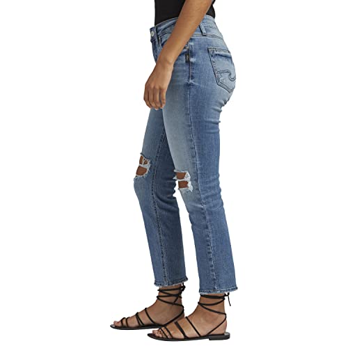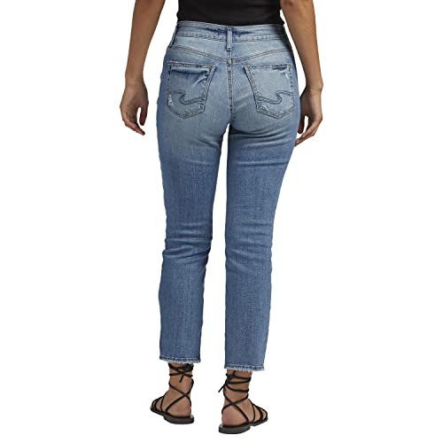 Silver Jeans Co. Women's Suki Mid Rise Curvy Fit Straight Crop Jeans, Med Wash EAE245, 30W x 27L