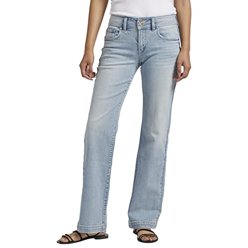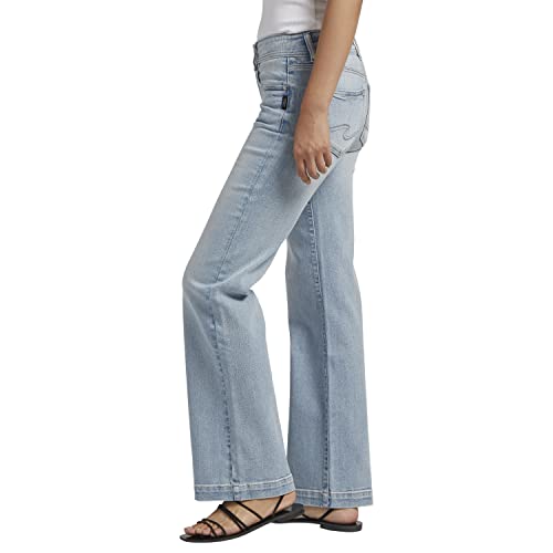 Silver Jeans Co. Women's Suki Mid Rise Curvy Fit Trouser Leg Jeans, Light Wash SOC122