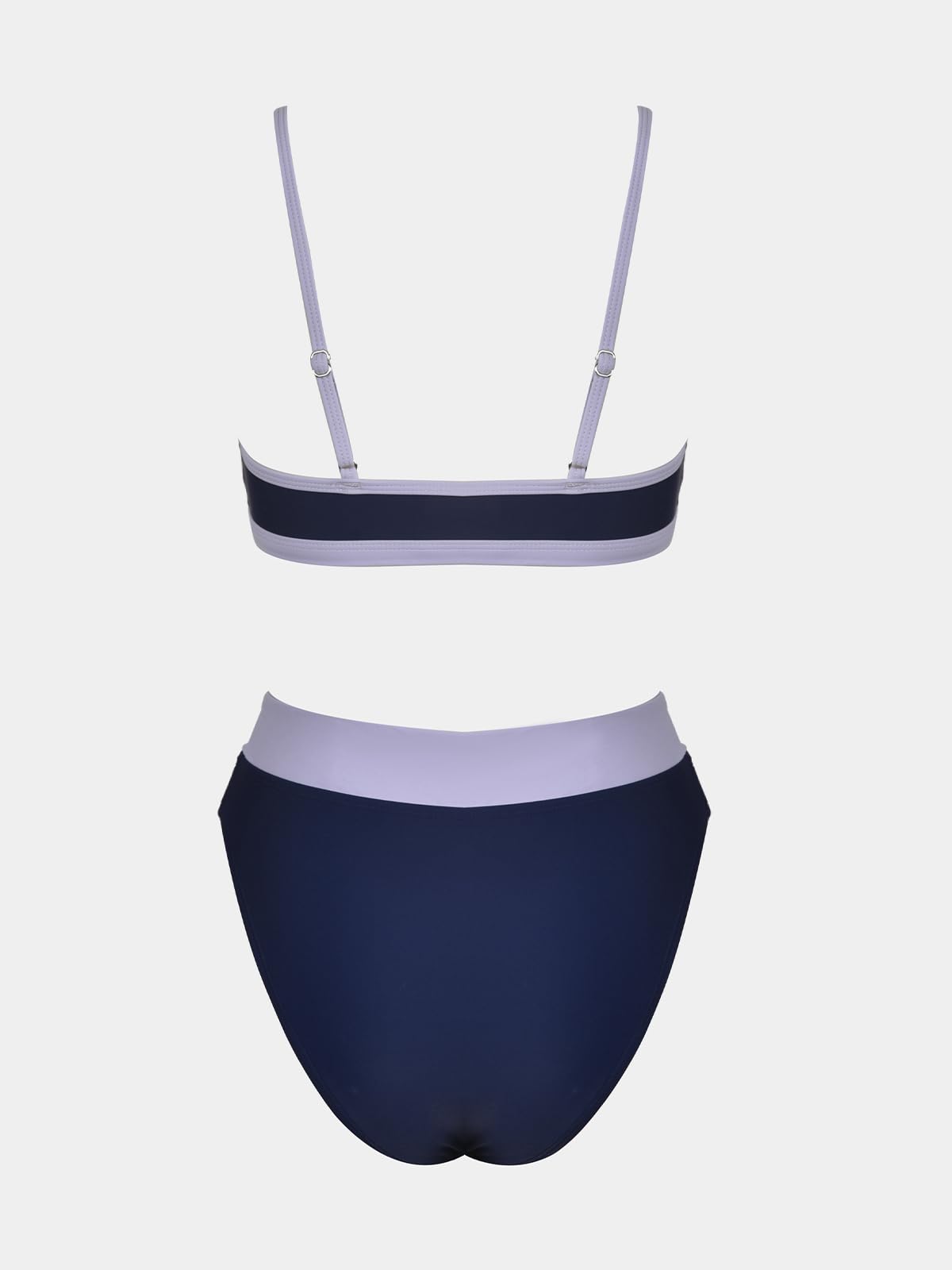 CUPSHE Bikini Set for Women Two Piece Swimsuits High Waisted Cut Out Scoop Neck V Front Bottom,M Purple/Blue