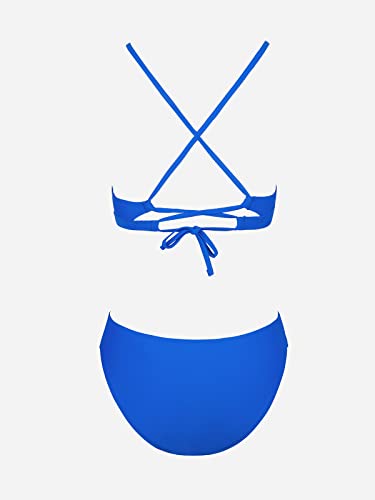 CUPSHE Bikini Set for Women Two Piece Swimsuits V Neck Low Rise Crisscross Back Self Tie Spaghetti Straps, M Cobalt Blue