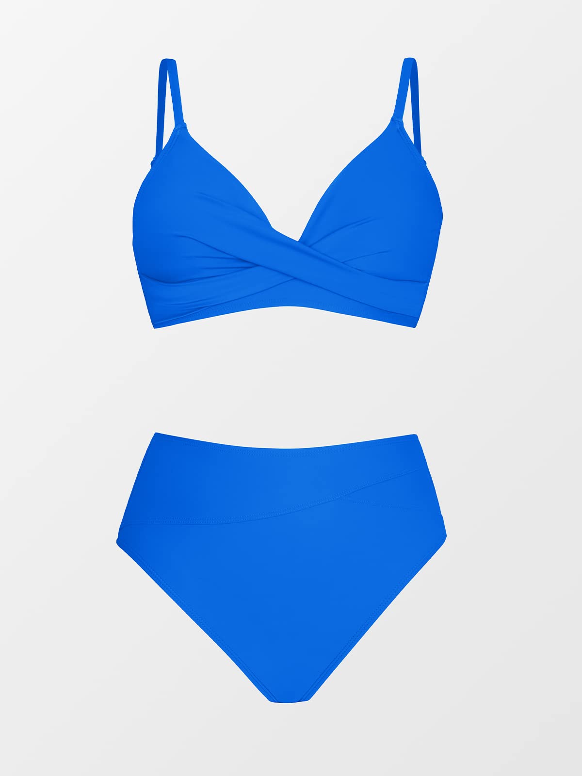 • Design: Wrapped front and asymmetrical bottom define this royal blue bikini set. The matching high waisted bottom piece for more tummy control